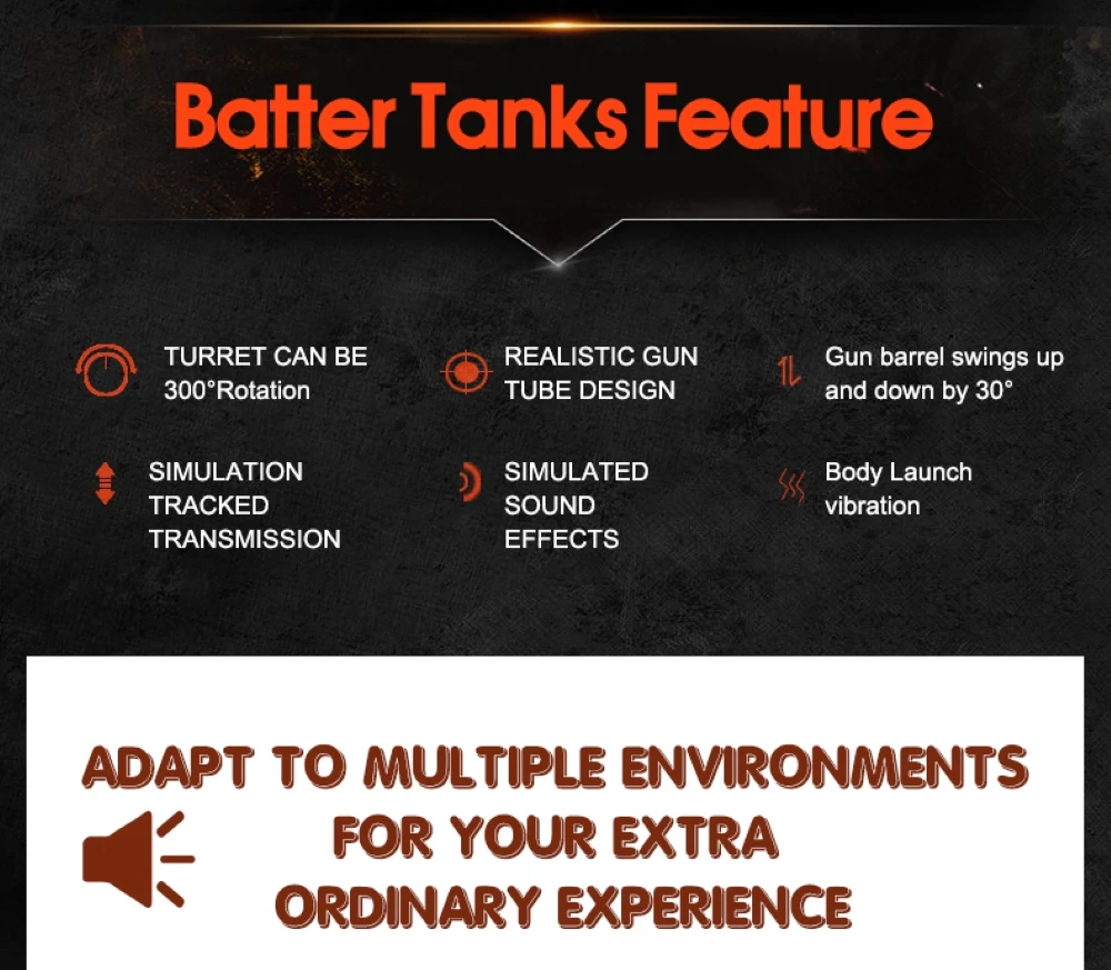 Simulation Shooting Function: The tank comes with a shooting feature, allowing it to fire simulated