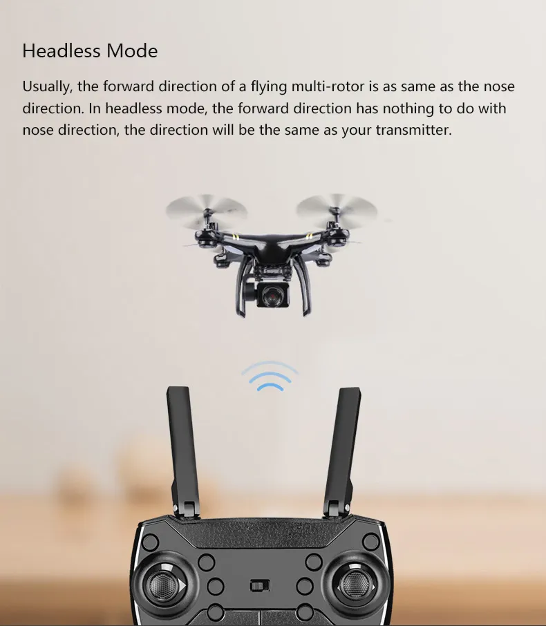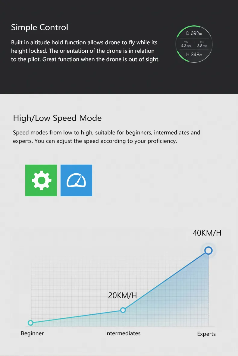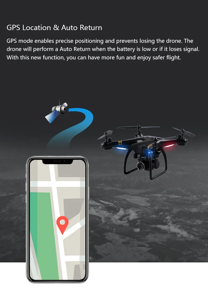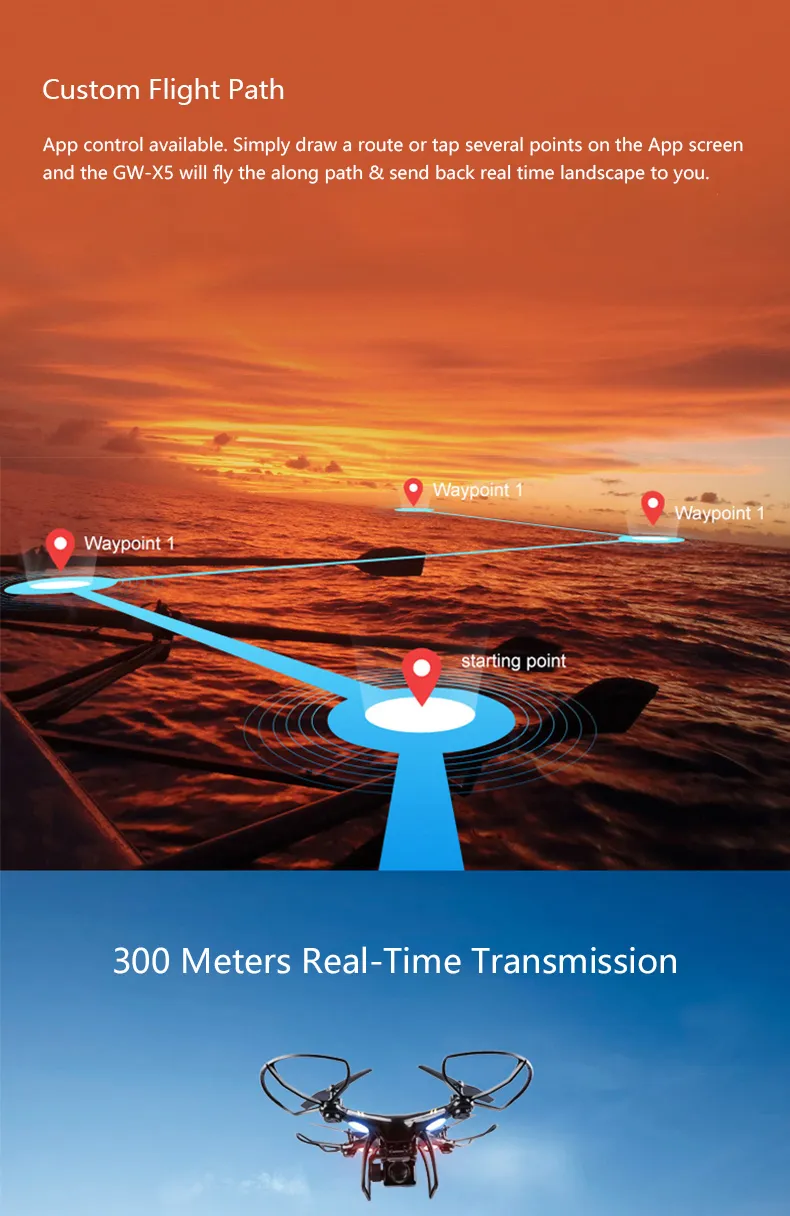 Function: up and down, left turn right turn, forward and backward, left and right side fly, follow mode, LED light, 3D roll, headless mode, fixed height mode, surround mode, trajectory flight, electric steering gear, photo recording, APP gravity , WIFI map transmission, induction operation, one-button take-off / landing;