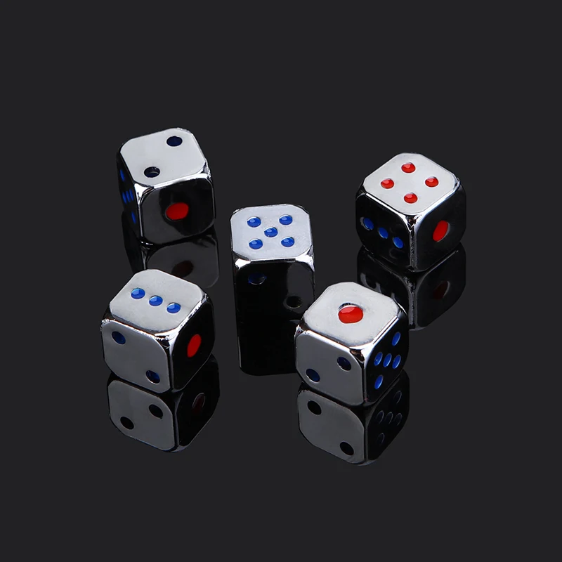 5PCS/1Set Creative Metal Dice Golden/Silver Funny Game Dice with Colorful Points