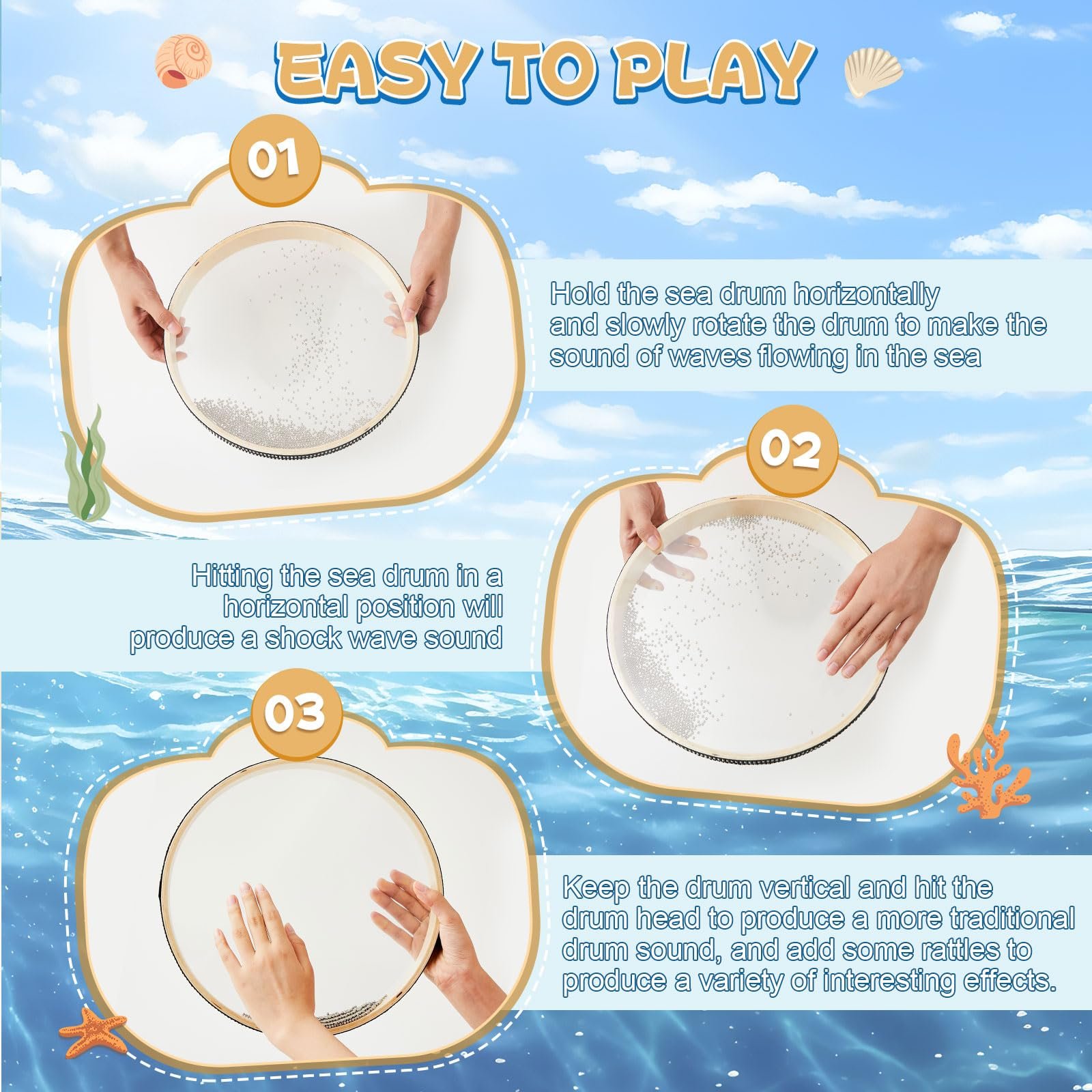- Wonderful Gift for Loved Ones: Ignite creativity and enhance motor skills with this delightful gift for little ones. Let them explore music while developing hand-eye coordination. Our ocean drum is also a thoughtful present for family, friends, and colleagues, promising memorable moments of togetherness at gatherings.