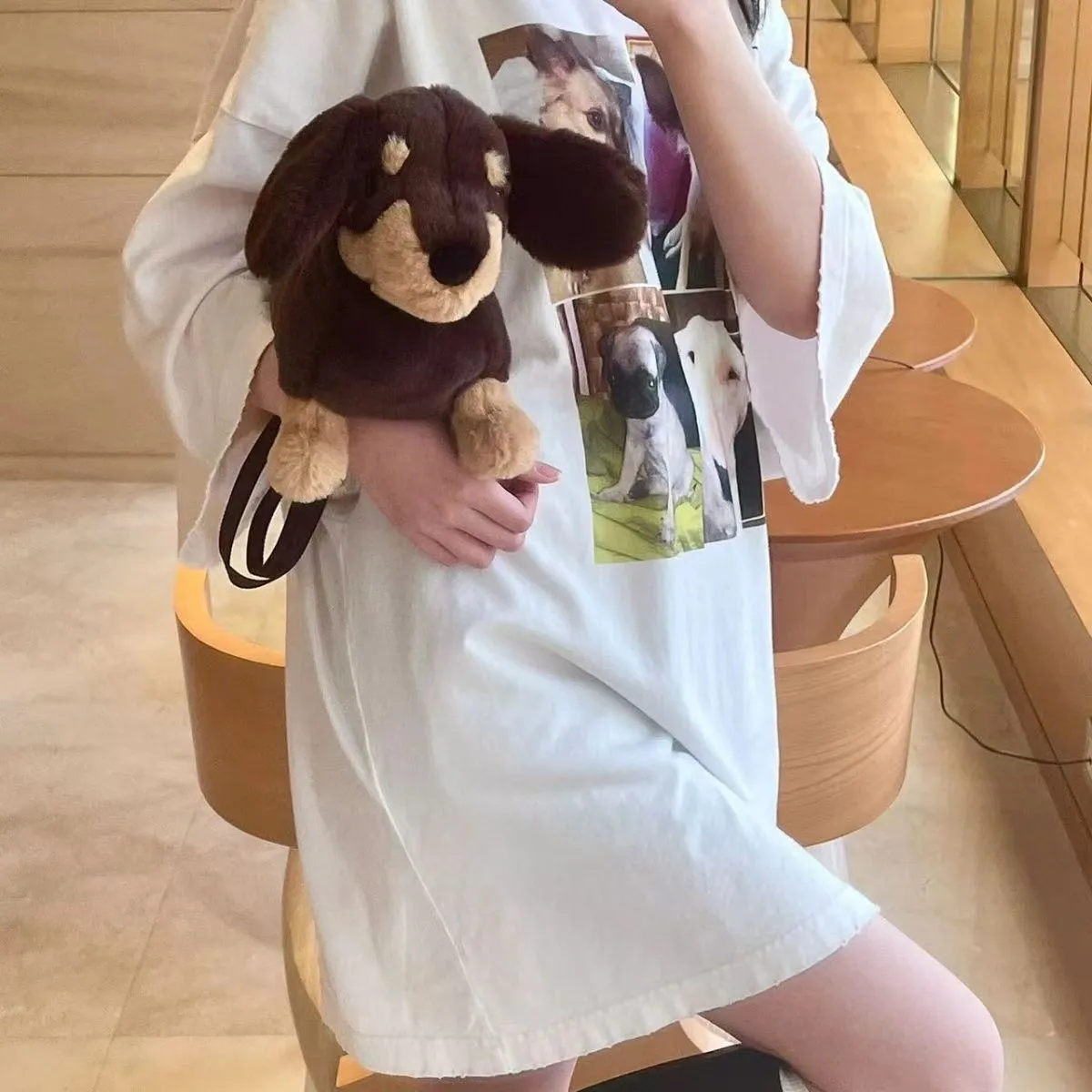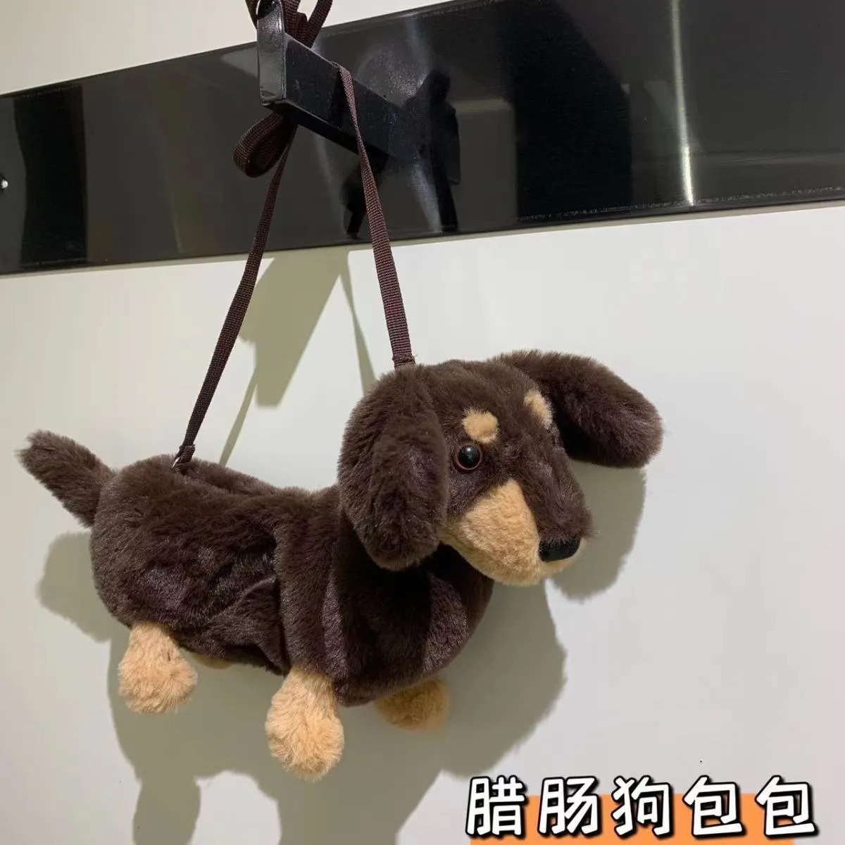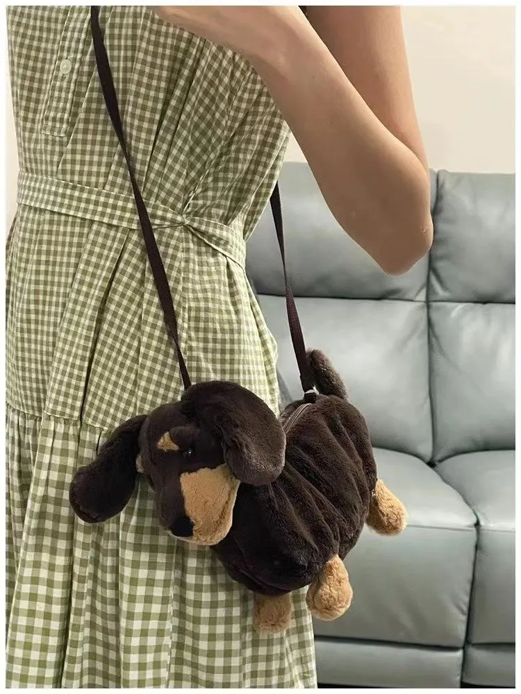 Add Whimsy to Your Wardrobe with the Plush Doll Sausage Dog Crossbody Shoulder Bag
