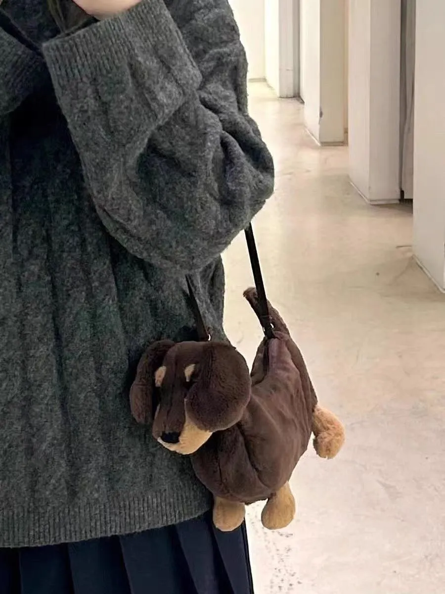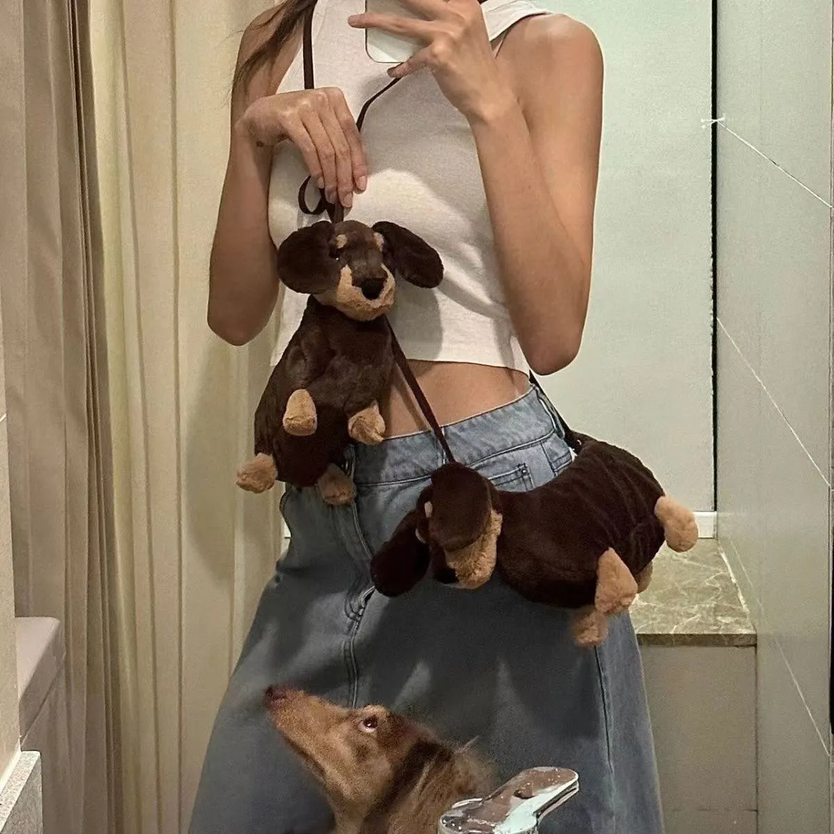 How to Style the Plush Doll Sausage Dog Crossbody Shoulder Bag