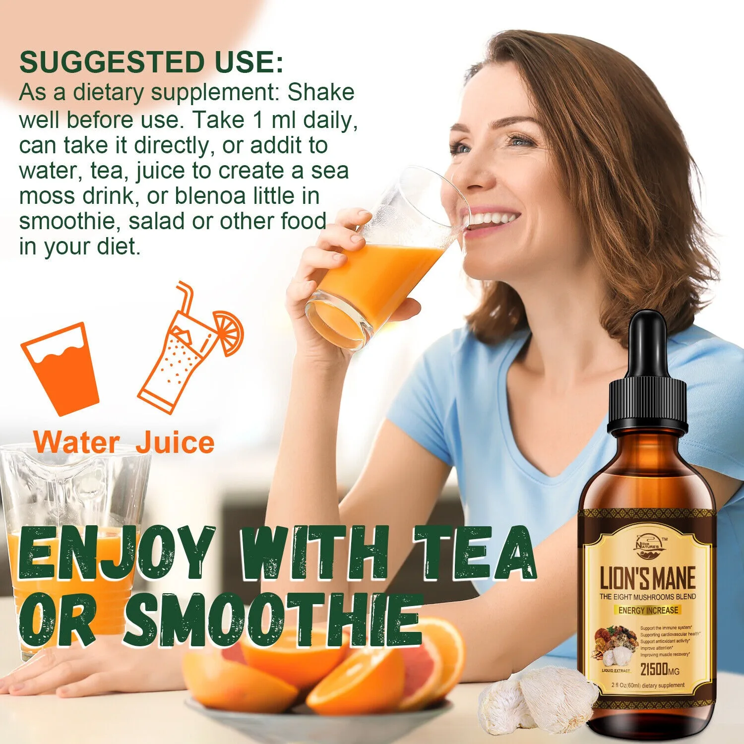 How to Use 60ml Lion’s Mane, Chaga Mushroom Complex Reishi Extract Liquid Herbal Drops