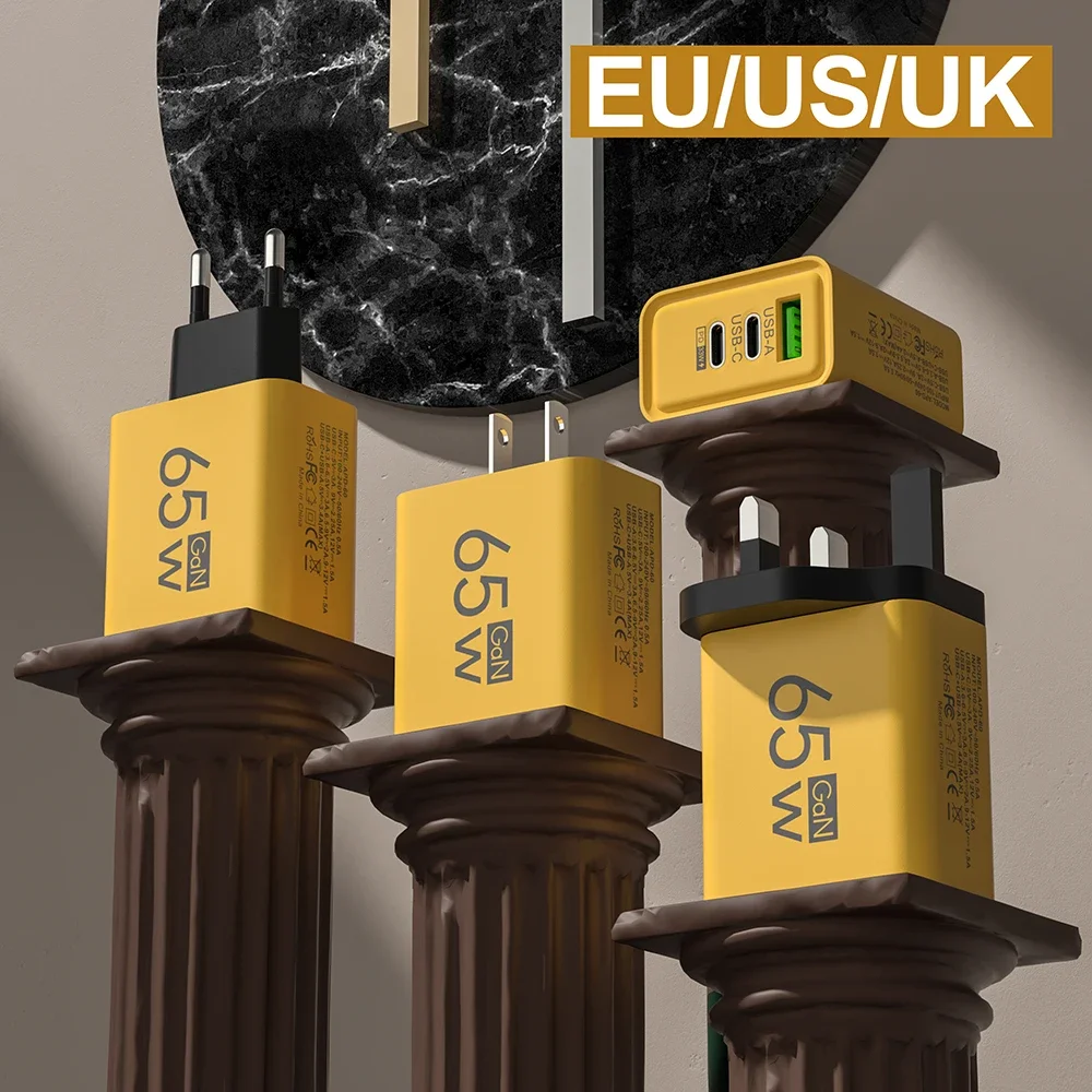 The 65W 3-port charger features a versatile charging solution with 1 USB a and 1 USB C port, as well as a PD 33W output, allowing you to easily charge multiple devices at the same time.[Small and convenient] : Chargers of different sizes can be provided according to the power standards of the United States, Europe and the United Kingdom, small and suitable for travel. Its compact form factor ensures portability without compromising power.