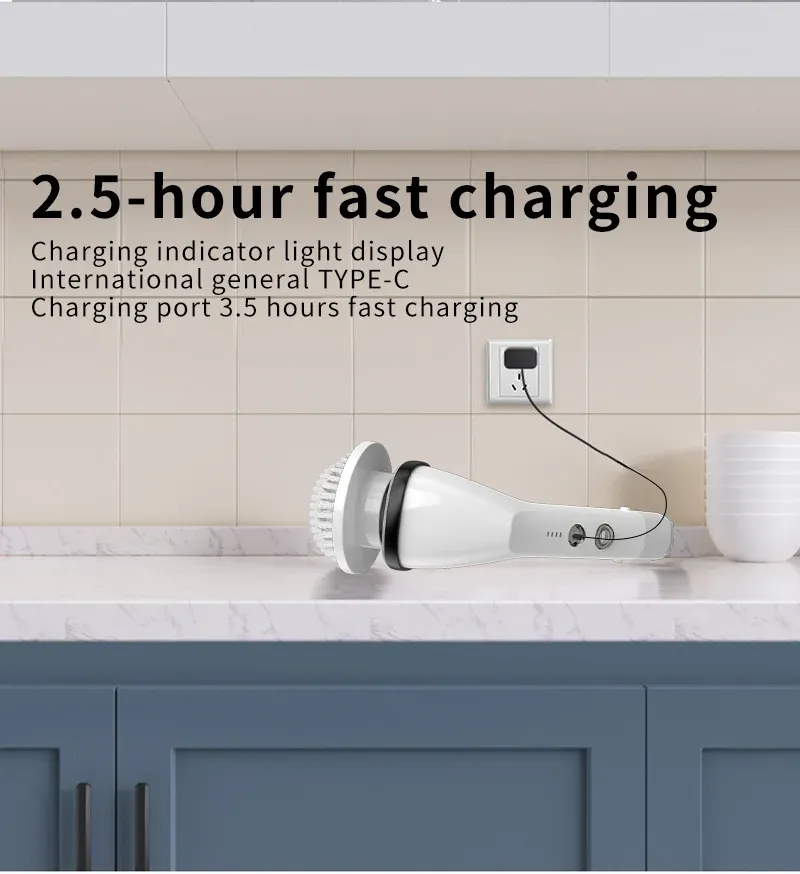The cordless design means you can use the brush anywhere without the hassle of cords getting in the way. Enjoy cleaning freedom as you move from room to room, making it especially useful for cleaning large or multi-room areas like kitchens and bathrooms.