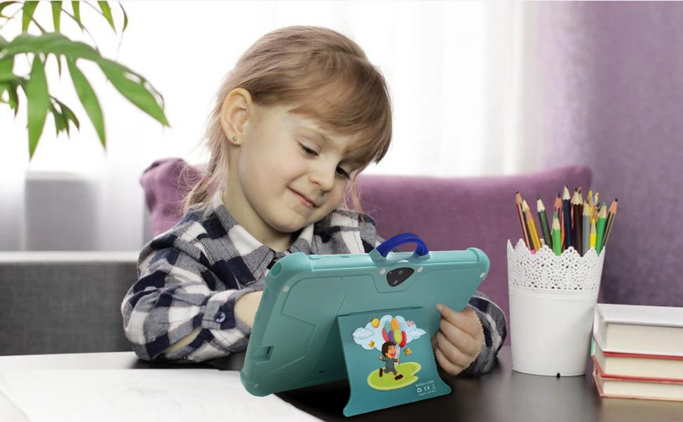 The new 7-inch 5G WiFi Kids Tablet is designed for study and education, featuring a quad-core processor, 4GB RAM, and 64GB ROM. This tablet comes with a durable portable case, making it perfect for children. It's an ideal gift for kids, providing a powerful and educational tool with Wi-Fi connectivity.