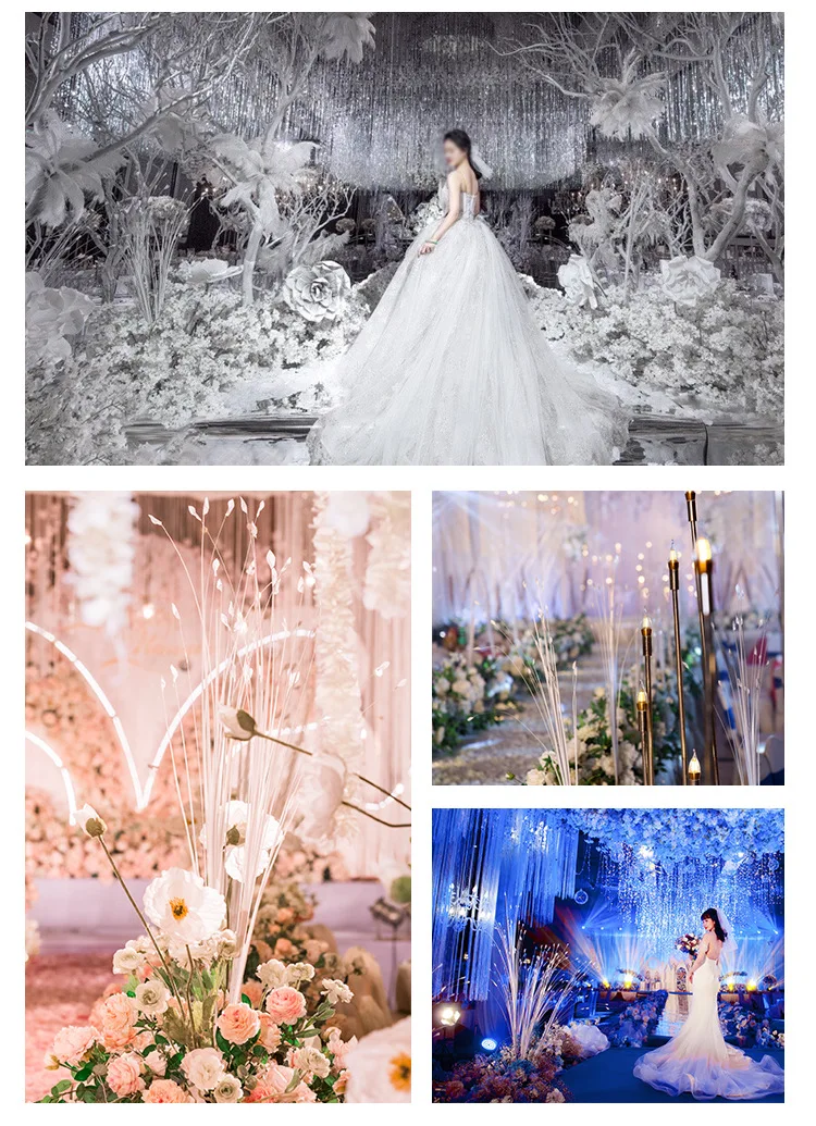 These artificial flowers are not just for aesthetics; they are designed to last. The high-quality plastic material ensures durability, making them ideal for repeated use in various settings. The onion grass and reed leaves add a natural touch, while the fireworks stage decoration aspect makes them perfect for lighting up any stage or venue. The peacock grass arrangement is versatile enough to be used as a centerpiece, a backdrop, or as a standalone decoration, making it a valuable addition to any decorator's toolkit.