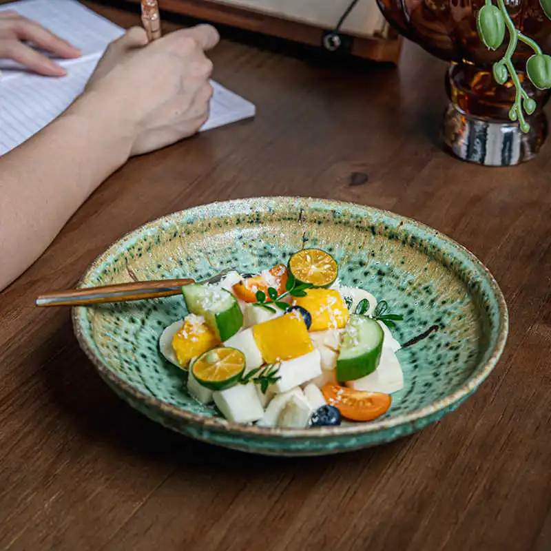 8-inch Deep Plates Stoneware Bamboo Hat Meal Bowl High-end Restaurant Tableware
