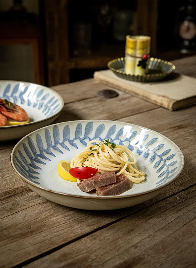 8-Inch Open Ceramic Deep Plates – Hand-Painted Tableware for Elegant Dining