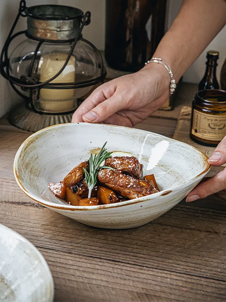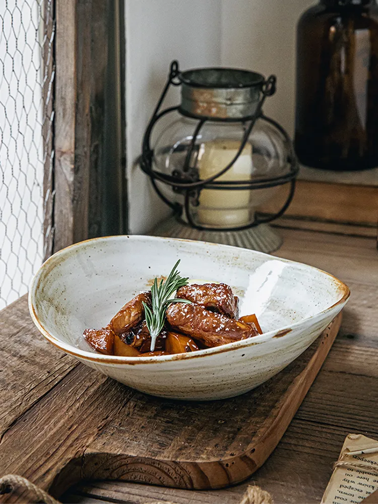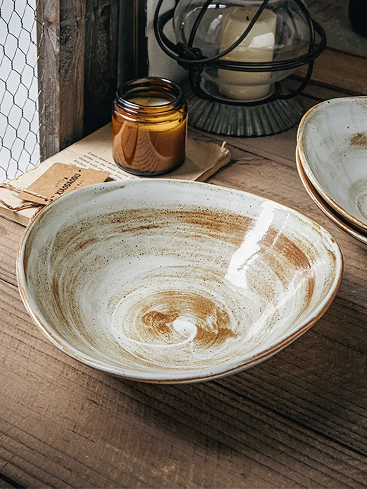 Color classification: 8-inch stoneware abnormal-shape bowl-brush pattern