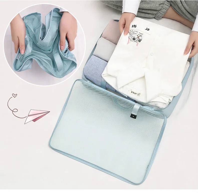 Stay organized and efficient while traveling with the 8-piece Set Luggage Divider Bag. This versatile travel storage set is designed to keep your clothes, shoes, underwear, and accessories neatly separated in your luggage, maximizing space and minimizing the chaos of packing. Featuring high-quality packing cubes, this set helps ensure that you travel with ease, keeping your items wrinkle-free and easy to access.