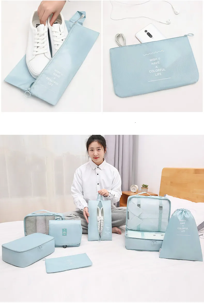 8-piece Set Luggage Divider Bag Travel Storage Clothes Underwear Shoes Organizer Packing Cube Bag