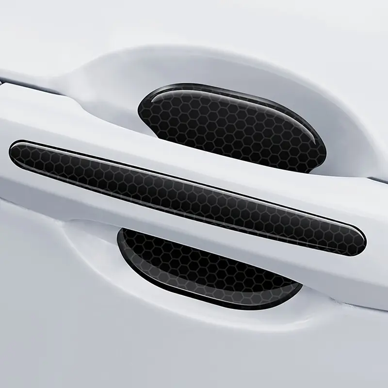 Specifications: Features: Flexible, scratch resistant Type: Door Protector Applications: Car Doors Material: 100% PVC Color: Black Net Weight: 0.05kg/ 0.11 lbs Handle Sticker Dimension: L * W 8x8cm/ 3.1x3.1 inch Handle Protectors:'%3E%3Crect x='0' y='0' width='1024' height='1024' fill='%23b7b7b5'/%3E%3Cg transform='scale(4.00) translate(0.5 0.5)'%3E%3Cellipse fill='%23000000' fill-opacity='0.50' cx='86' cy='92' rx='24' ry='153'/%3E%3Cg transform='translate(174.95 78.84) rotate(179.96) scale(27.51 73.84)'%3E%3Cellipse fill='%23000000' fill-opacity='0.50' cx='0' cy='0' rx='1' ry='1'/%3E%3C/g%3E%3Cg transform='translate(21.57 102.29) rotate(271.73) scale(252.65 37.05)'%3E%3Cellipse fill='%23ffffff' fill-opacity='0.50' cx='0' cy='0' rx='1' ry='1'/%3E%3C/g%3E%3Cg transform='translate(248.50 142.04) rotate(177.67) scale(50.84 212.39)'%3E%3Cellipse fill='%23ffffff' fill-opacity='0.50' cx='0' cy='0' rx='1' ry='1'/%3E%3C/g%3E%3Cg transform='translate(124.28 237.00) rotate(89.74) scale(7.44 79.03)'%3E%3Cellipse fill='%23000000' fill-opacity='0.50' cx='0' cy='0' rx='1' ry='1'/%3E%3C/g%3E%3Cg transform='translate(147 177) rotate(182) scale(112 39)'%3E%3Crect fill='%231c1c1a' fill-opacity='0.50' x='-0.5' y='-0.5' width='1' height='1'/%3E%3C/g%3E%3Cellipse fill='%23000000' fill-opacity='0.50' cx='128' cy='214' rx='81' ry='7'/%3E%3Crect fill='%23ffffff' fill-opacity='0.50' x='0' y='142' width='256' height='17'/%3E%3Cellipse fill='%23ffffff' fill-opacity='0.50' cx='119' cy='176' rx='255' ry='6'/%3E%3Cellipse fill='%23ffffff' fill-opacity='0.50' cx='102' cy='75' rx='255' ry='6'/%3E%3C/g%3E%3C/g%3E%3C/svg%3E)