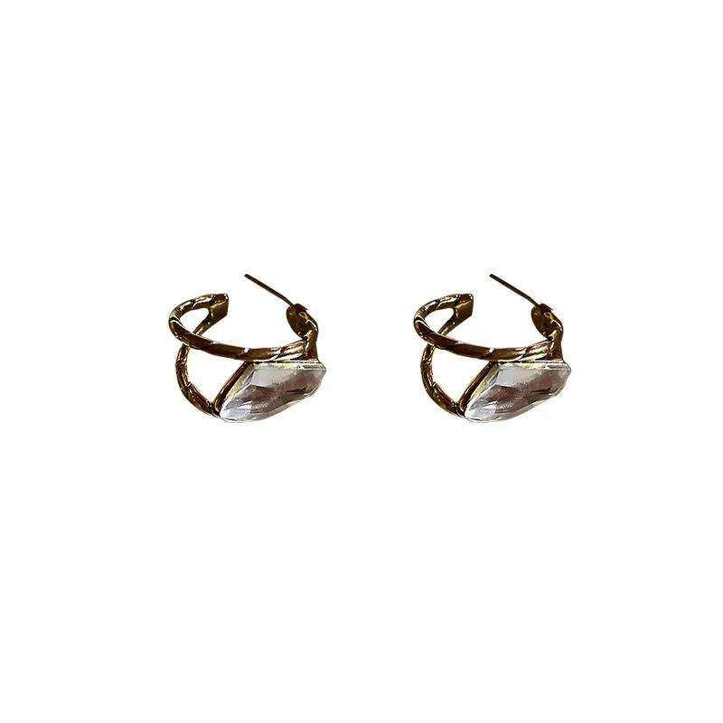 925 Silver Needle Fashion Rhinestone Hollow C Shape Stud Earrings