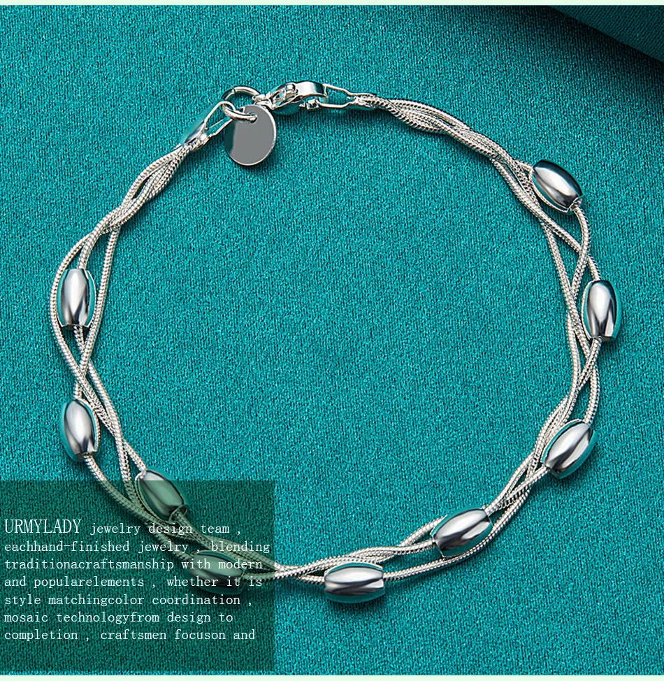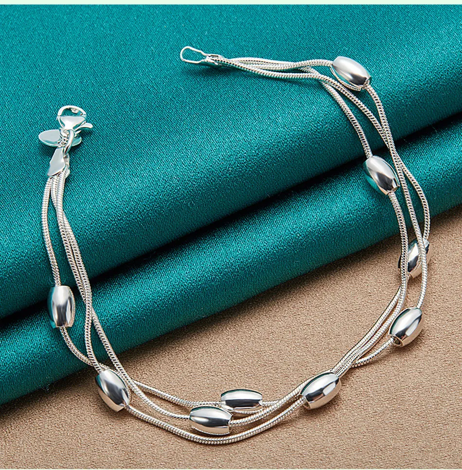 925 Sterling Silver Bead Bracelet Fashion Chain for Womens