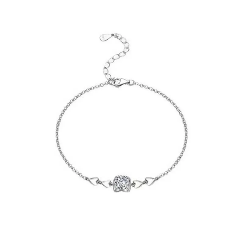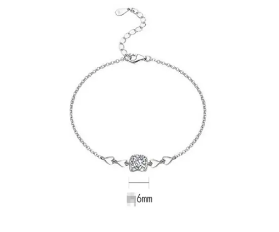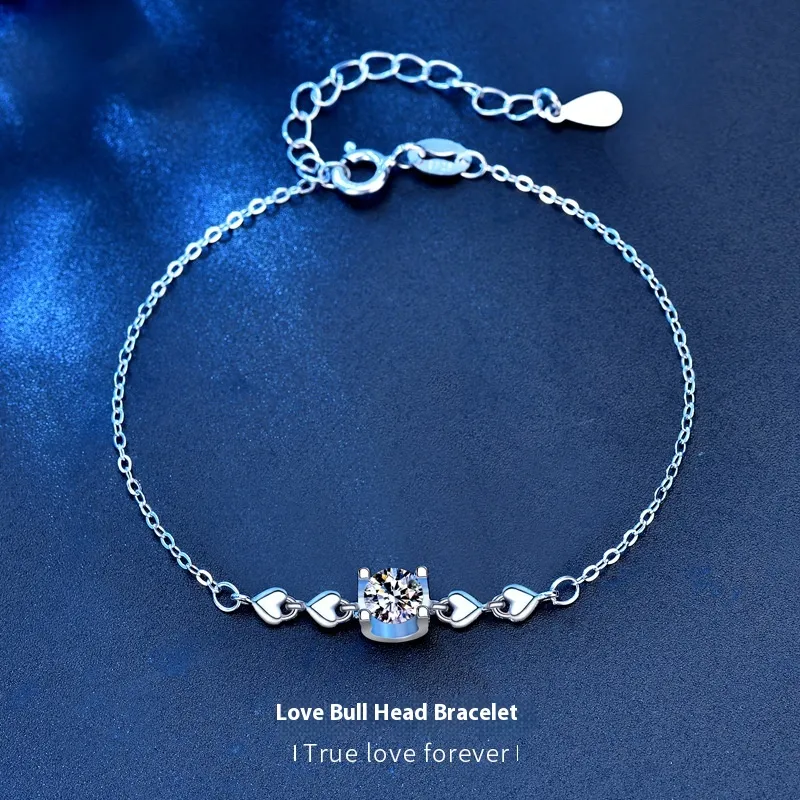 925 Sterling Silver Bracelet Female With Hearts Cow Head Inlaid
