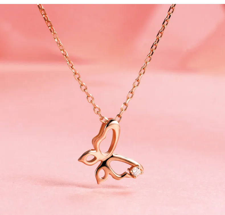 925 Sterling Silver Hollow Butterfly Rose Gold Female Fashion Niche Light Luxury Clavicle Chain