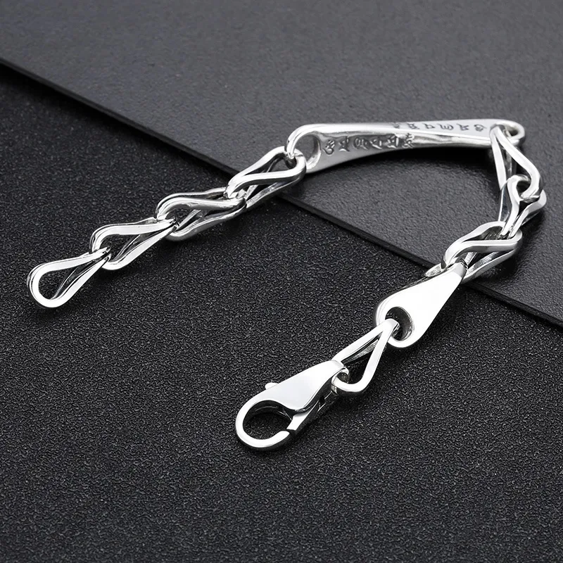 925 Sterling Silver Ornament Trendy Unique Six Words Mantra Bracelet
