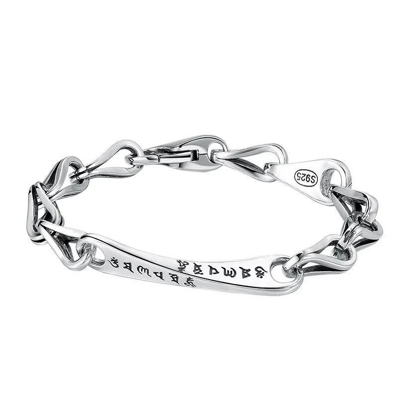 Key Features of the 925 Sterling Silver Ornament Trendy Unique Six Words Mantra Bracelet