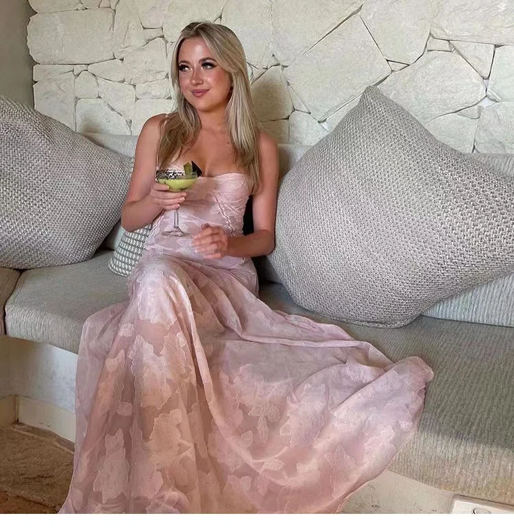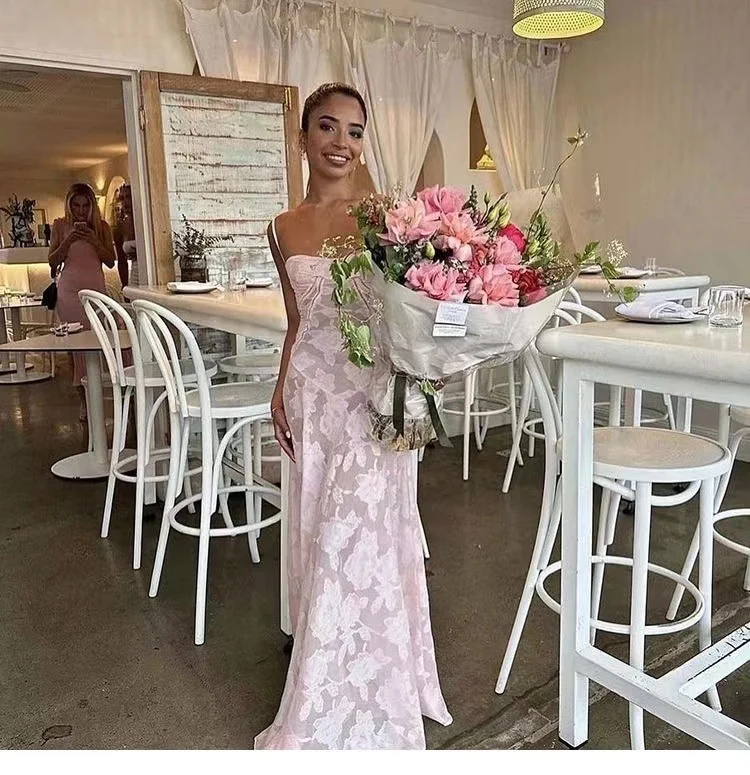 glistening lame fabric that catches the light beautifully in a soft pink, embellished with floral blooms. 'Abigail' features a built in bra