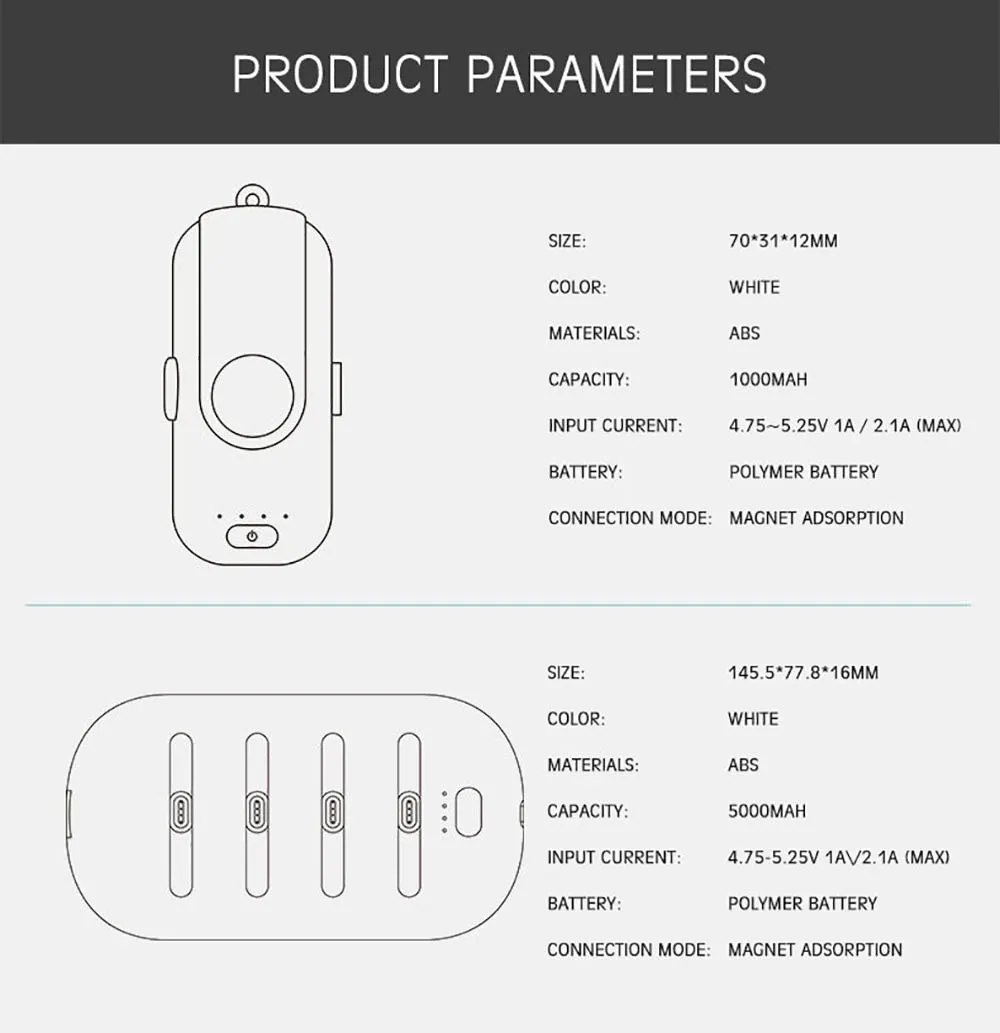 1000mAh+Magnetic Line+Type-c Head Contains: