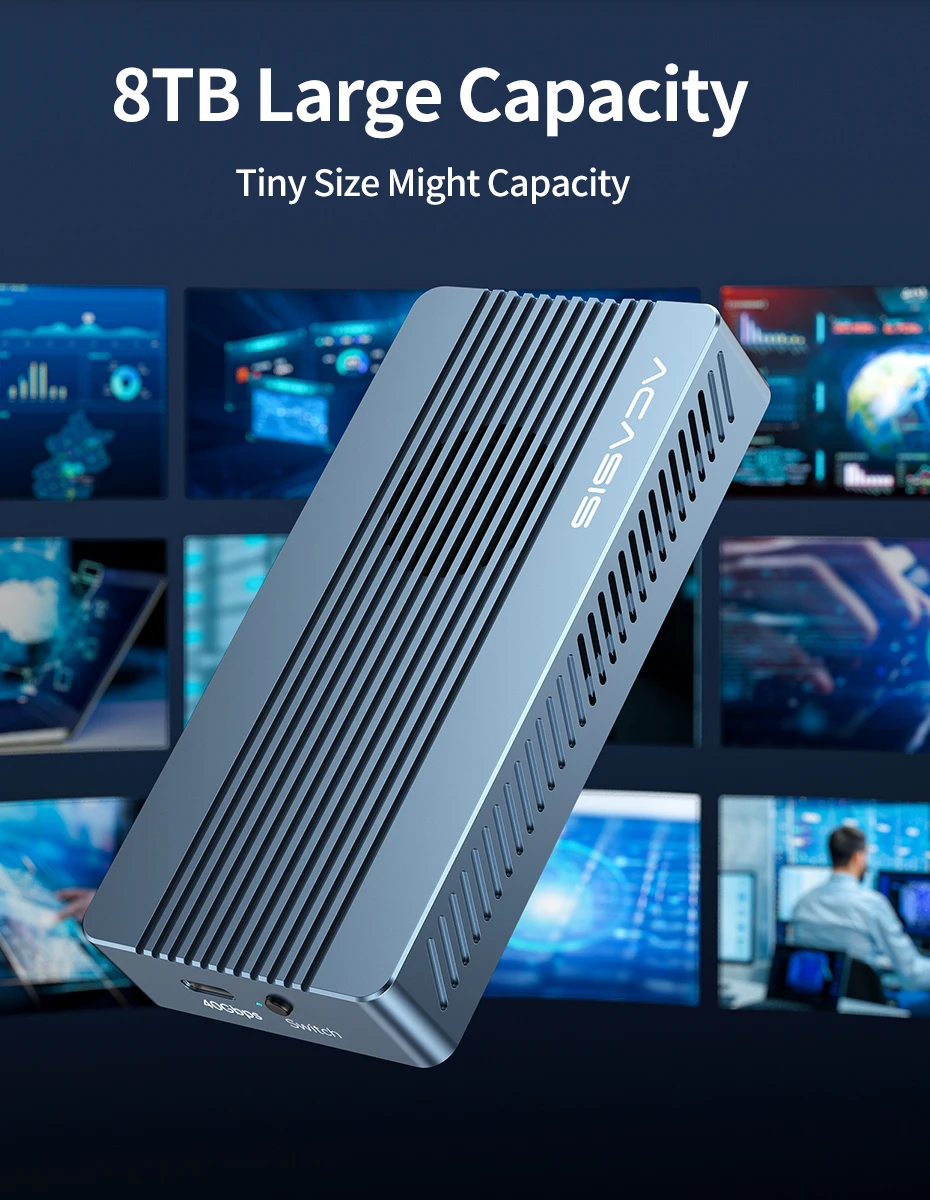 The ACASIS SSD case supports NVMe M.2 SSDs up to 8TB.