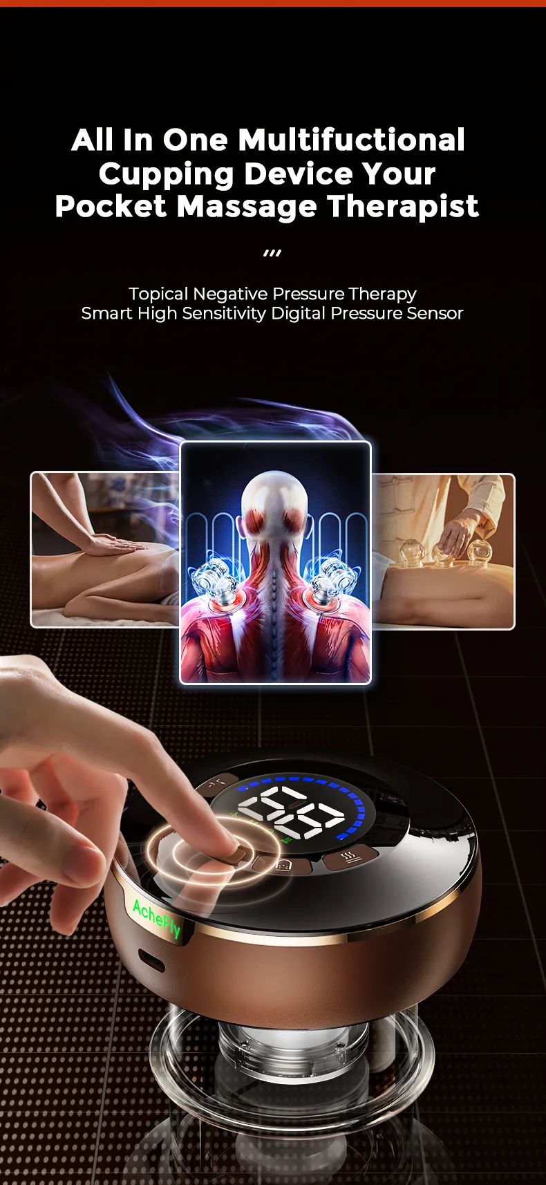 ● AcheFly cupping device is a multi-functional massager, which combines the ancient Chinese