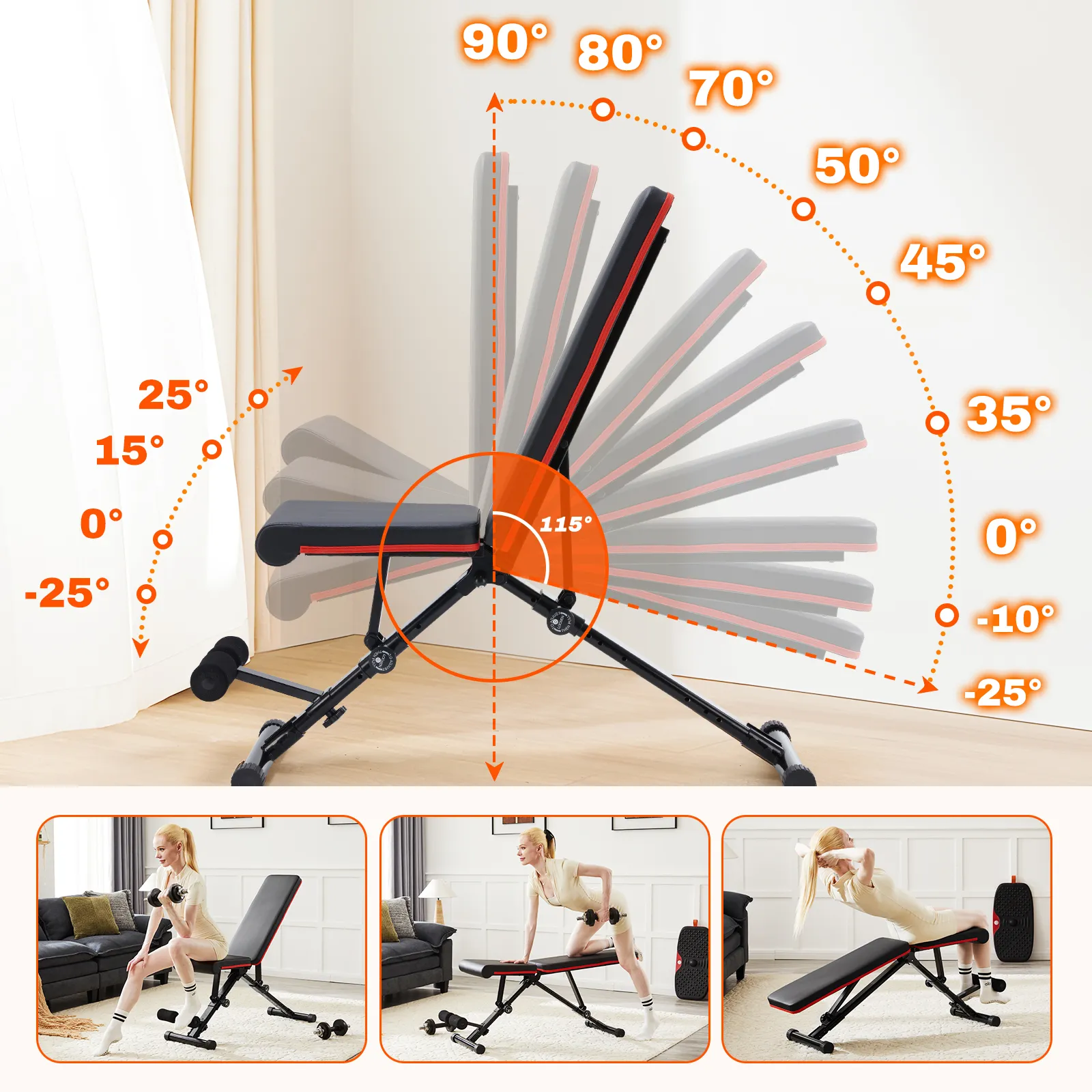 Versatile Workouts: With its adjustable angles, this bench allows you to target different muscle groups, including chest,