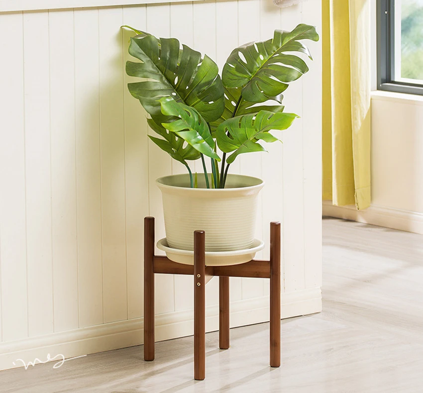 The plant stand pairs well with a variety of plant pots, from simple terracotta pots to modern ceramic containers. Choose decorative pots that complement the bamboo stand and the overall color scheme of your room for a cohesive look.