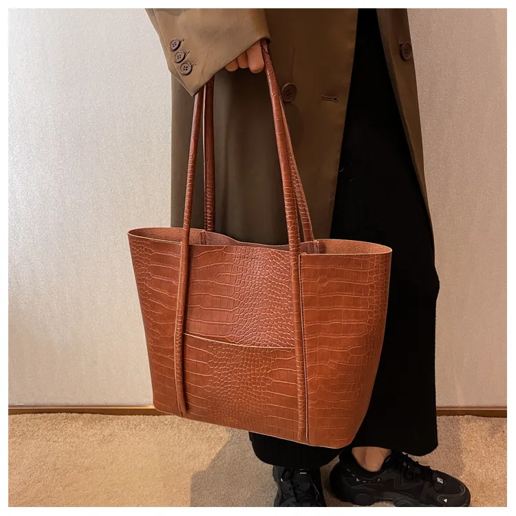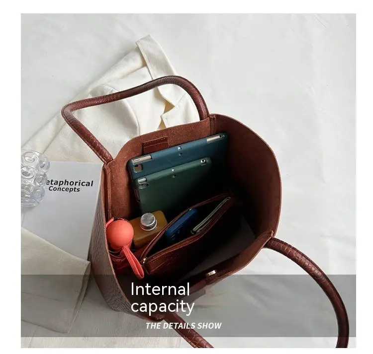 Advanced Texture Shoulder Soft Leather Western Style Commuter Tote Large Capacity Combination Bags