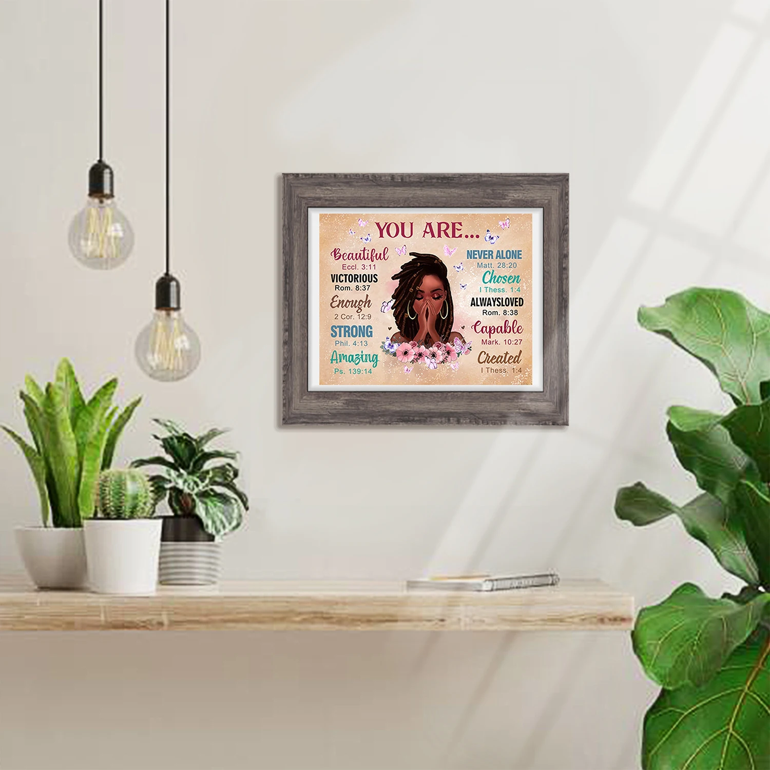 Crafted with care and designed to inspire, this wall art brings positivity and strength to your space. The Christian message embedded within the art reminds us of the importance of faith, empowerment, and self-love, making it a perfect choice for Christian women and those looking to honor African American culture and beauty.