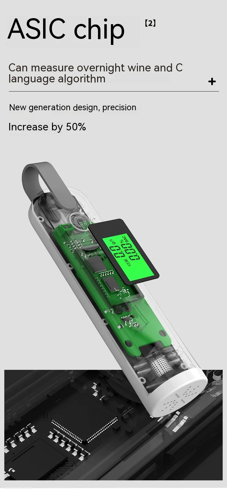Portable and Compact Design: Designed for on-the-go use, the Alcohol Tester is lightweight and compact,