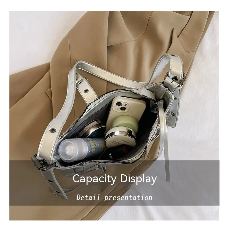 All-match Crescent Dumpling Leisure Commute French Rivet Motorcycle Bag