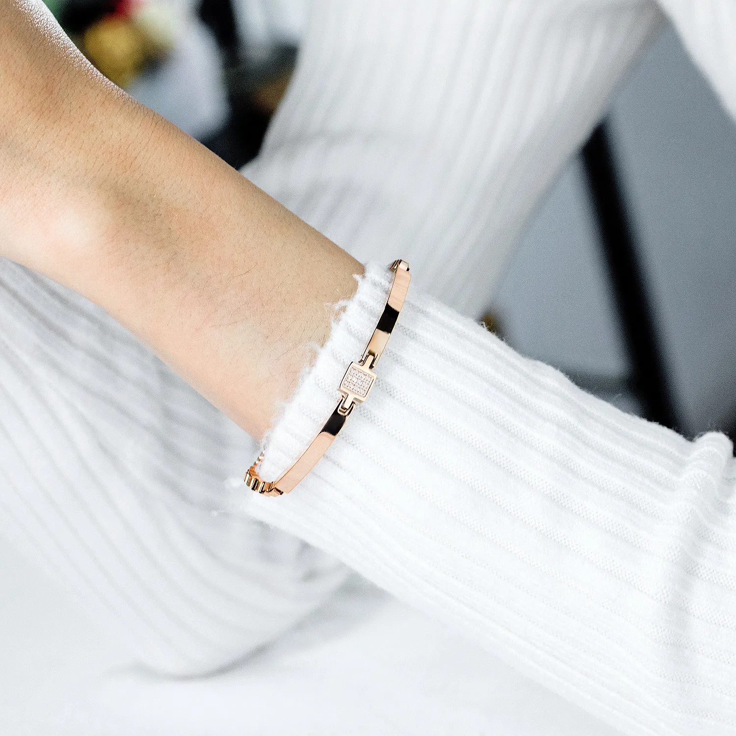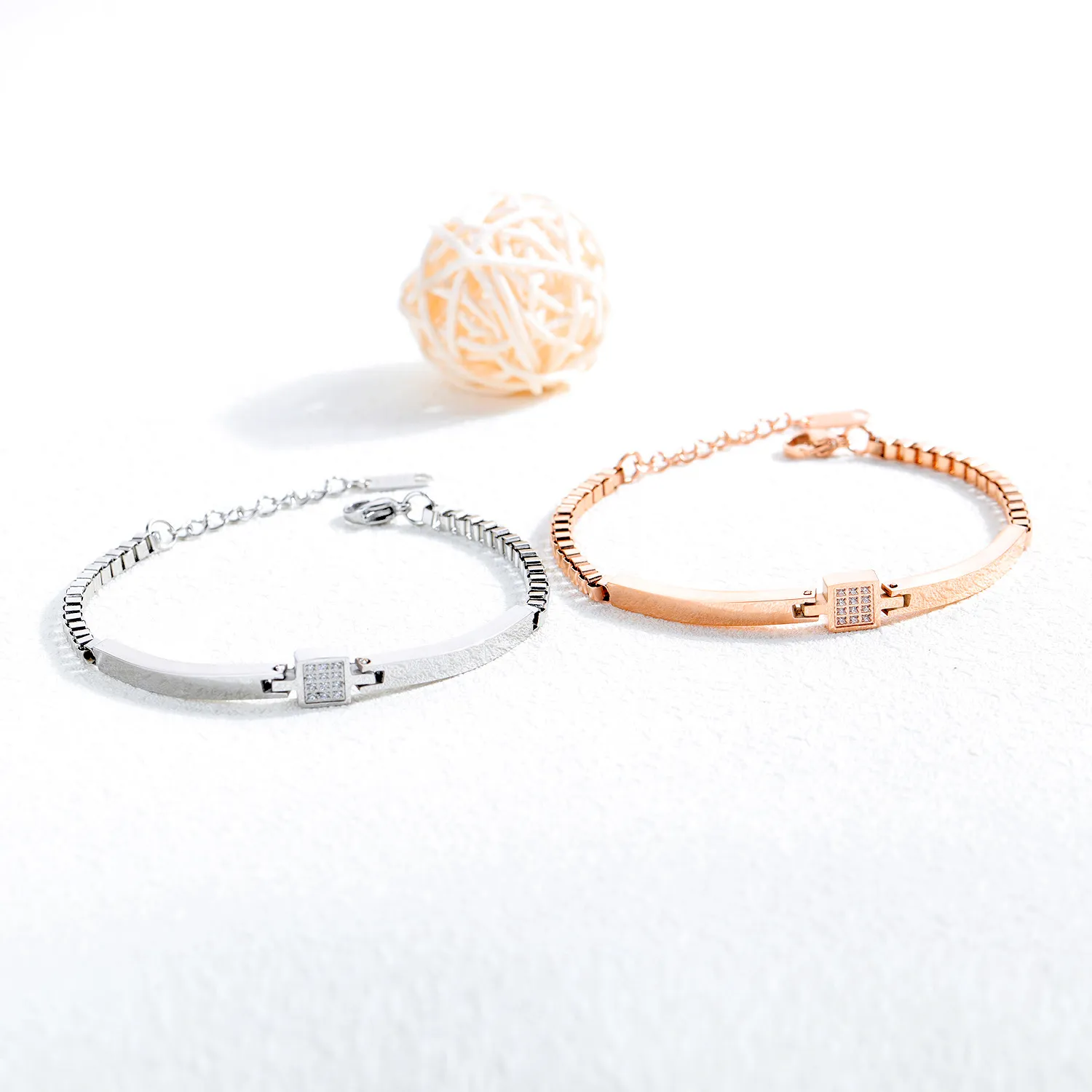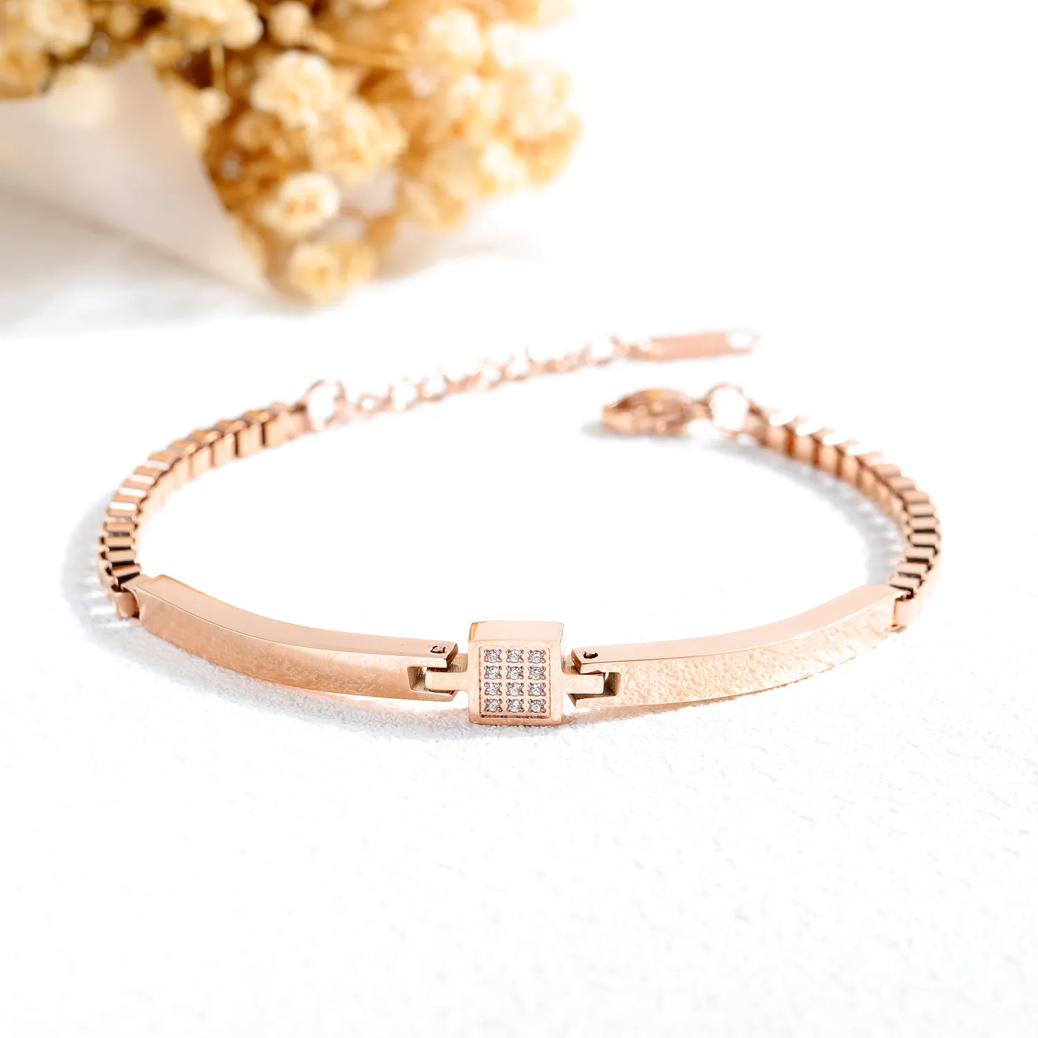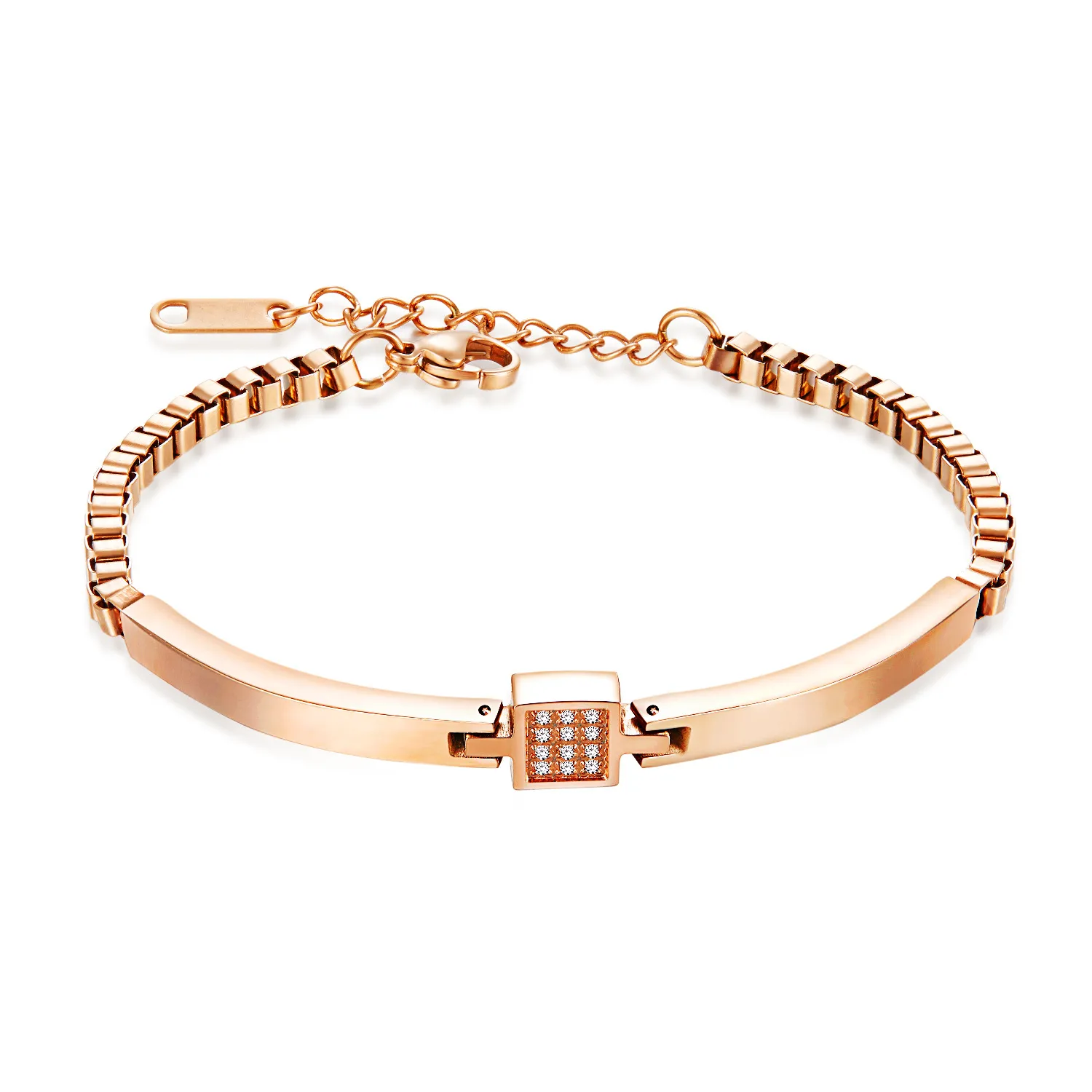 All-match Rose Gold Plated Zircon Box Chain