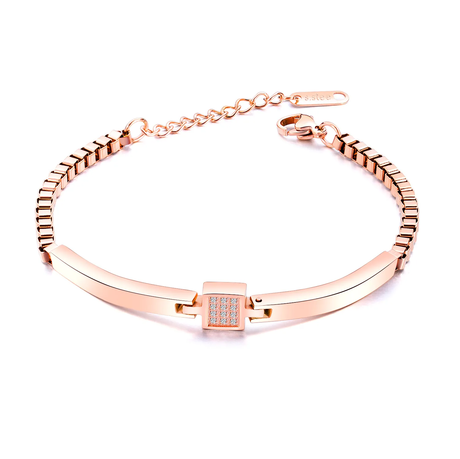 All-match Rose Gold Plated Zircon Box Chain
