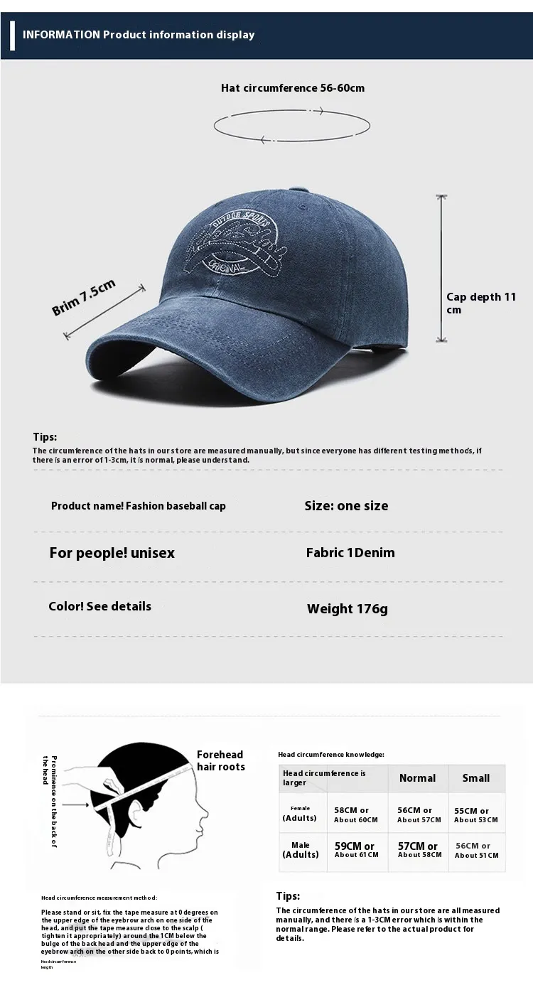 All-match Washed Denim Baseball Cap Distressed Hat Outdoor