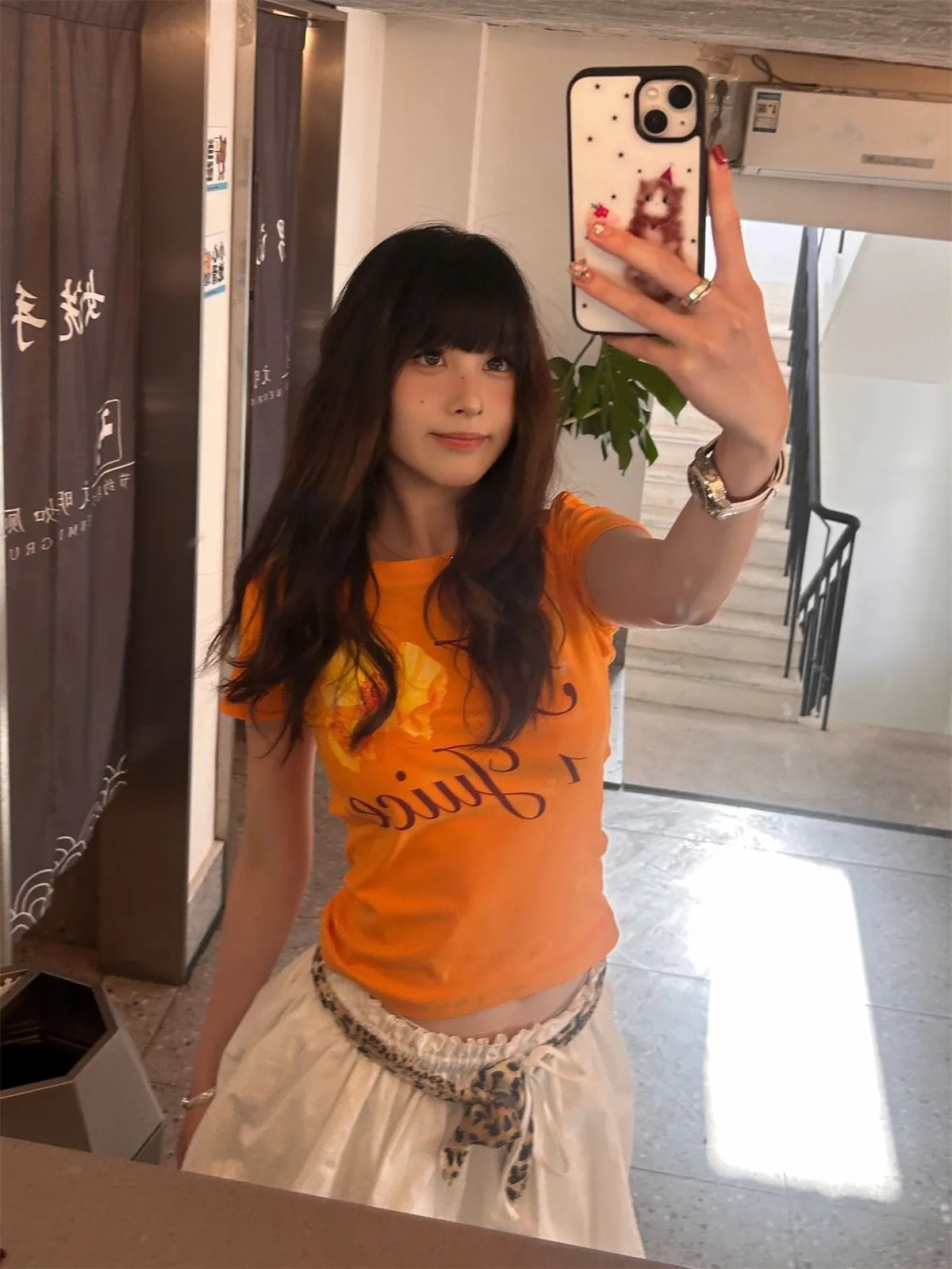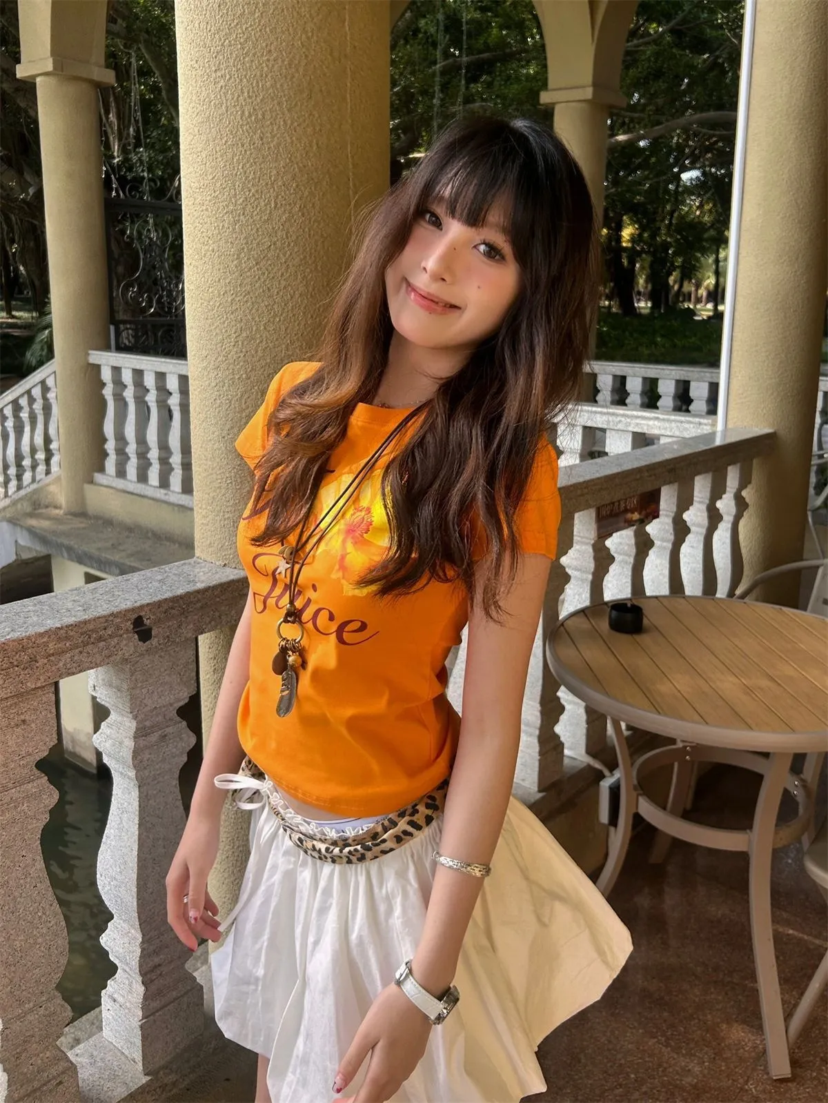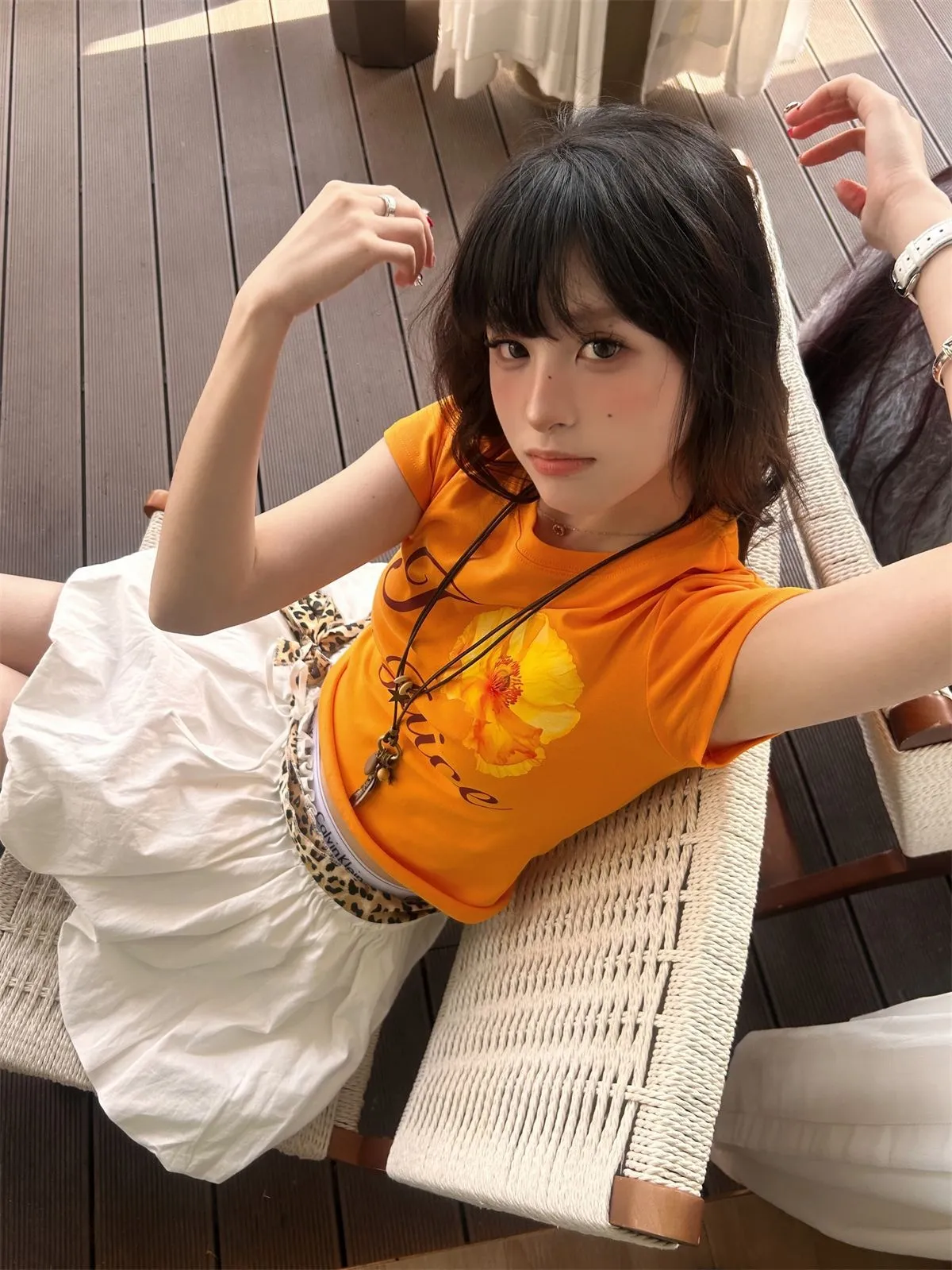 All-Matching Summer Orange Printed Short Sleeve – Bright, Breezy, and Perfect for Kiwi Summers