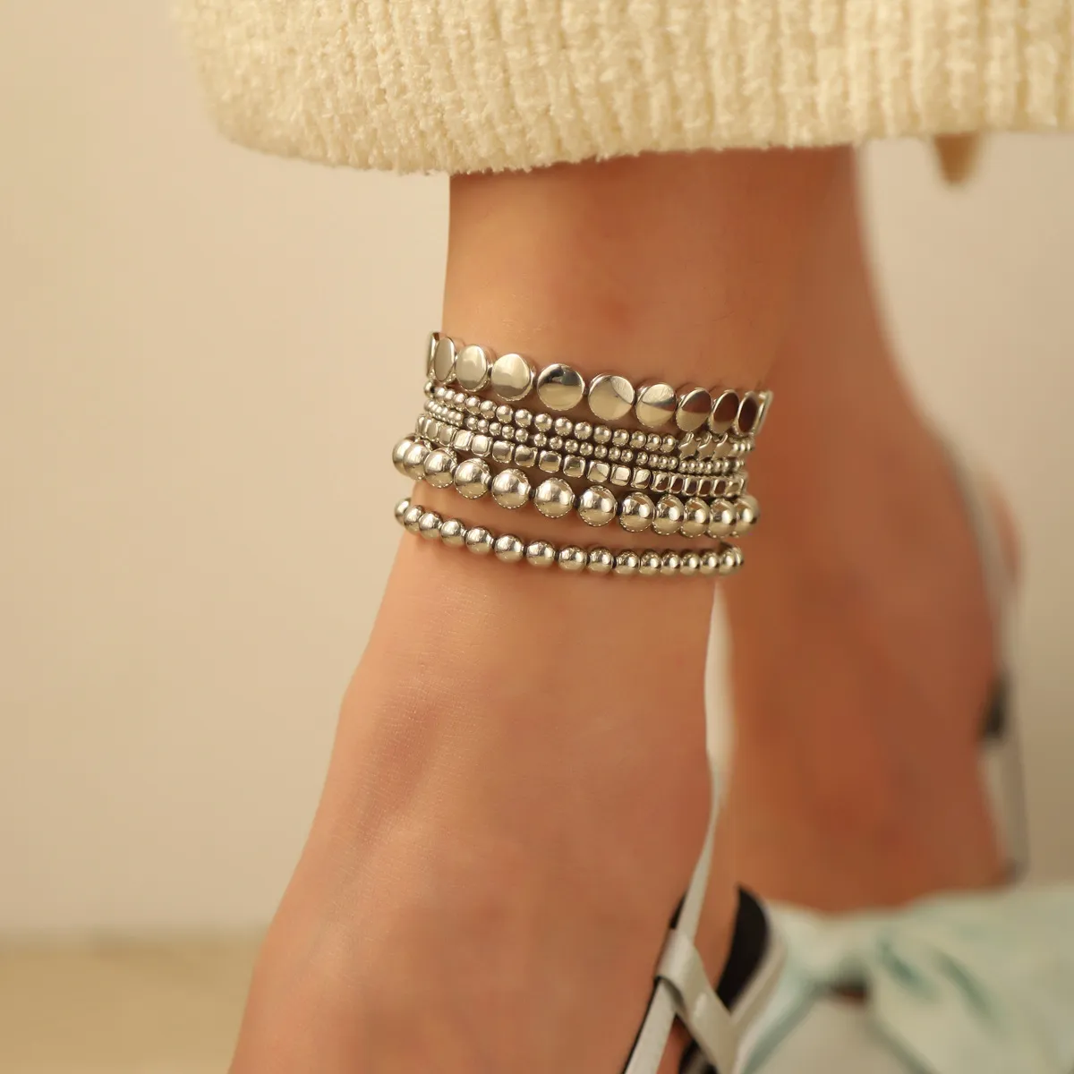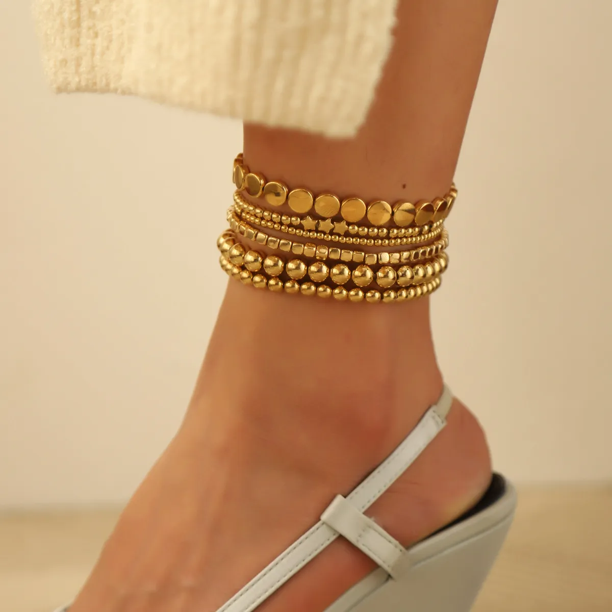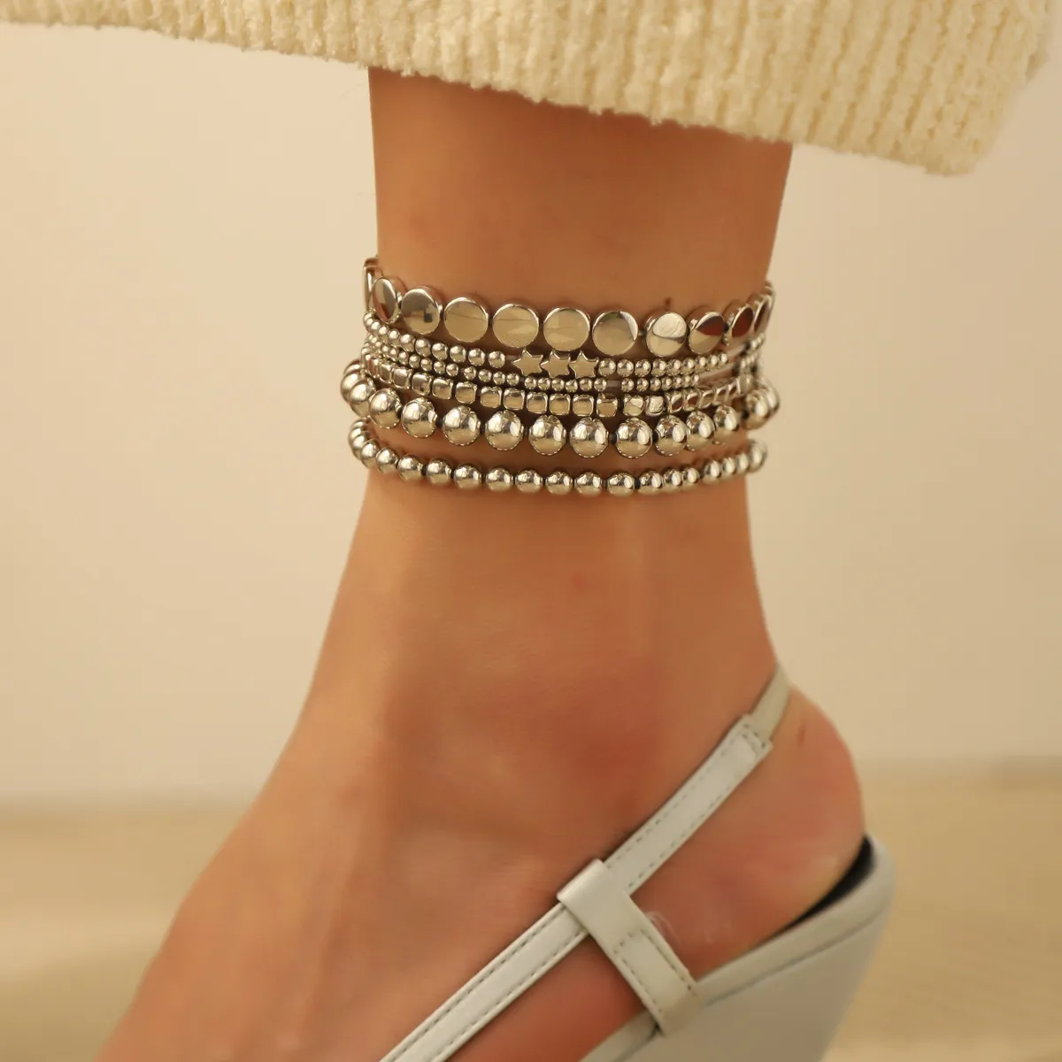 Why Choose the Alloy Beads Geometric Twin Anklet Six-Piece Set?