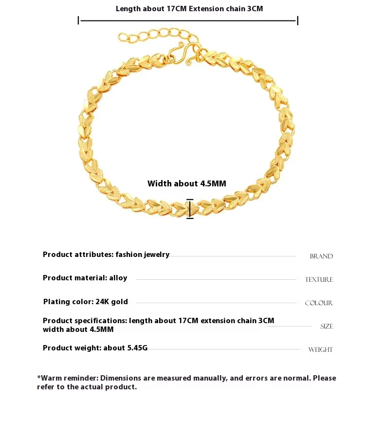 Alloy Gold Plated Car Handmade Flowers Reverse Mold Heart Bracelet