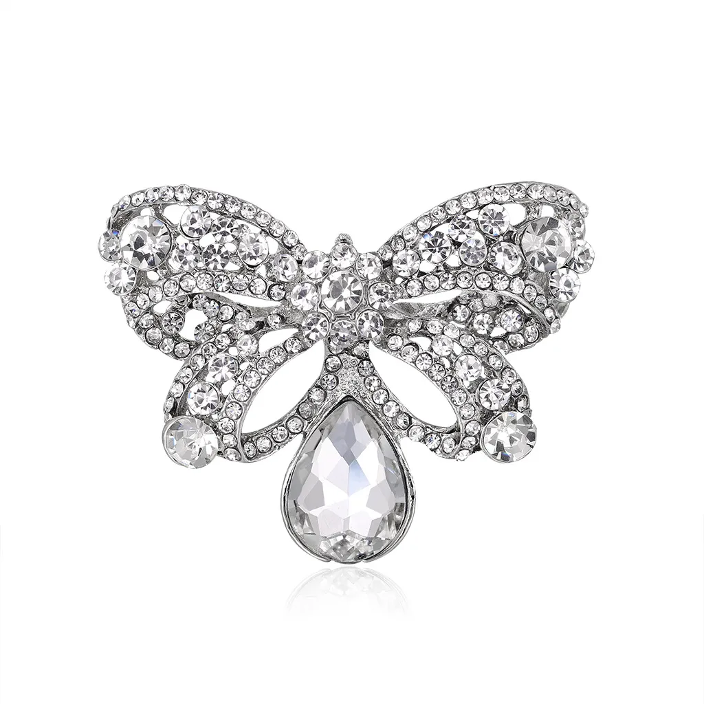 Alloy Inlaid White Rhinestone Bow Brooch