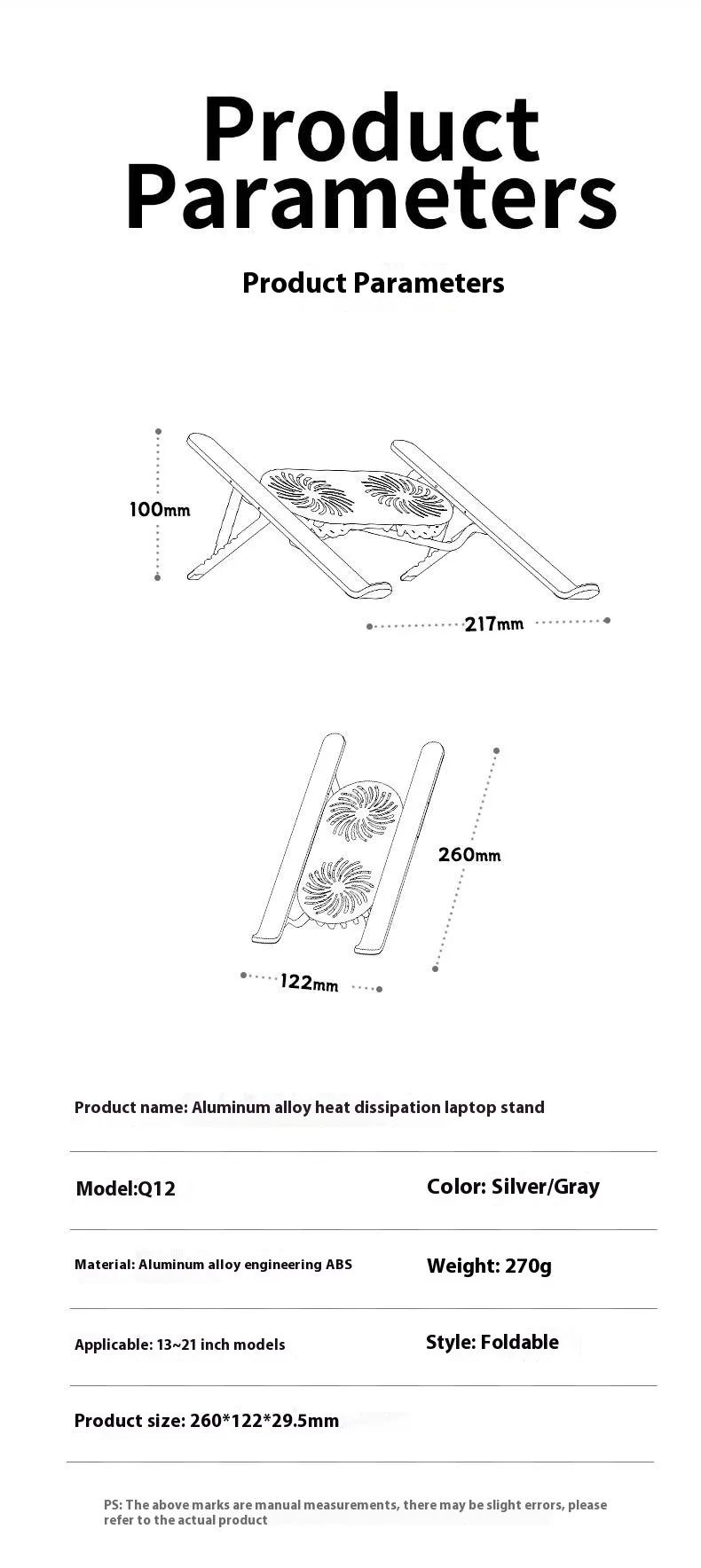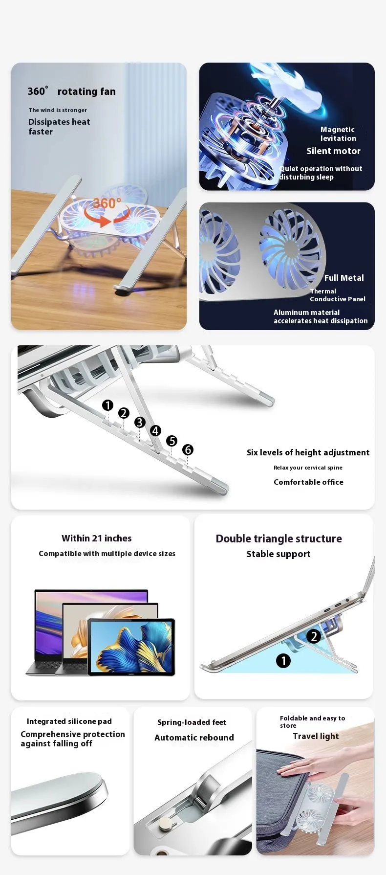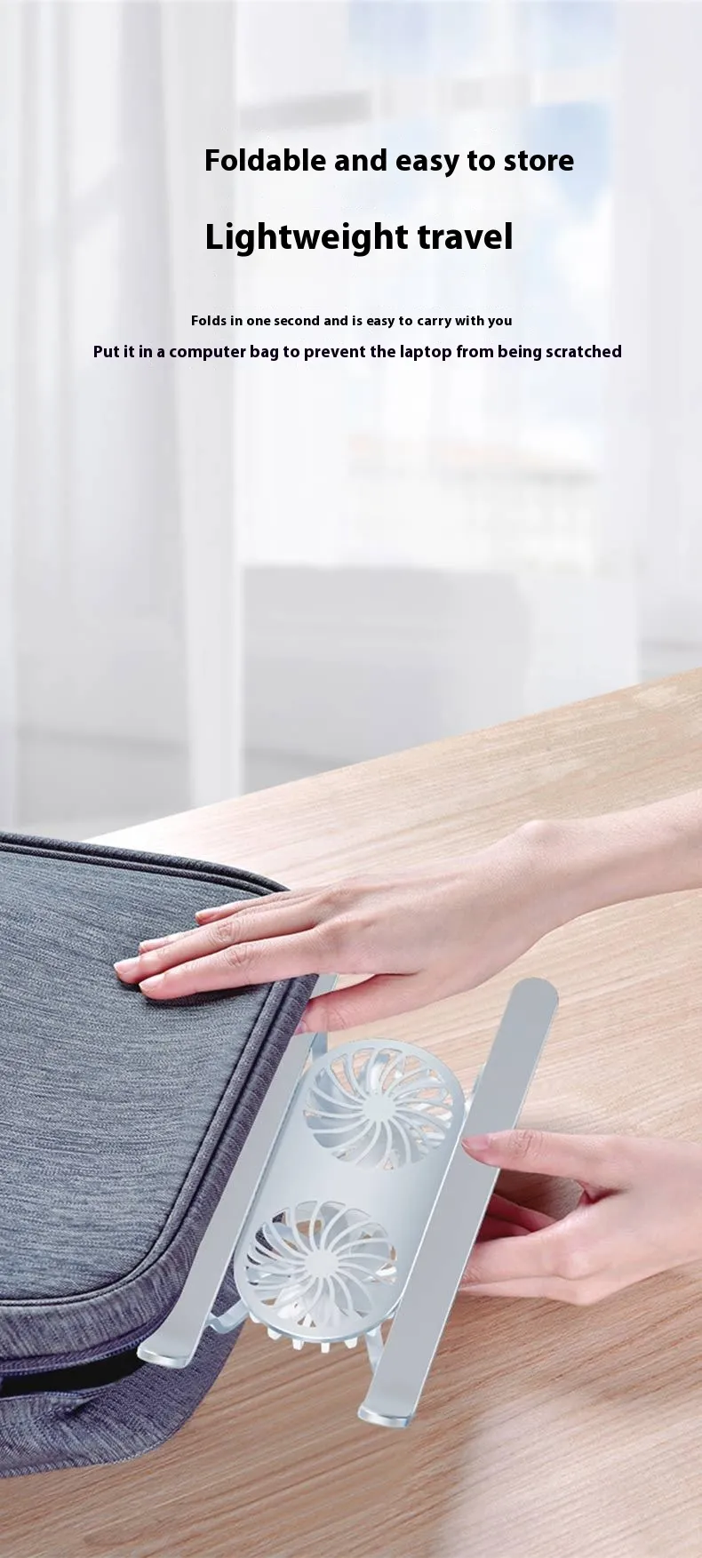 Aluminum Alloy Notebook Stand Portable Folding Lifting Tablet Height Increasing Desktop Twin Fan Computer