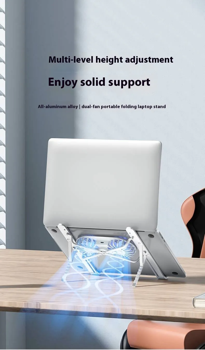 Aluminum Alloy Notebook Stand Portable Folding Lifting Tablet Height Increasing Desktop Twin Fan Computer: Optimal Comfort and Cooling for Your Devices
