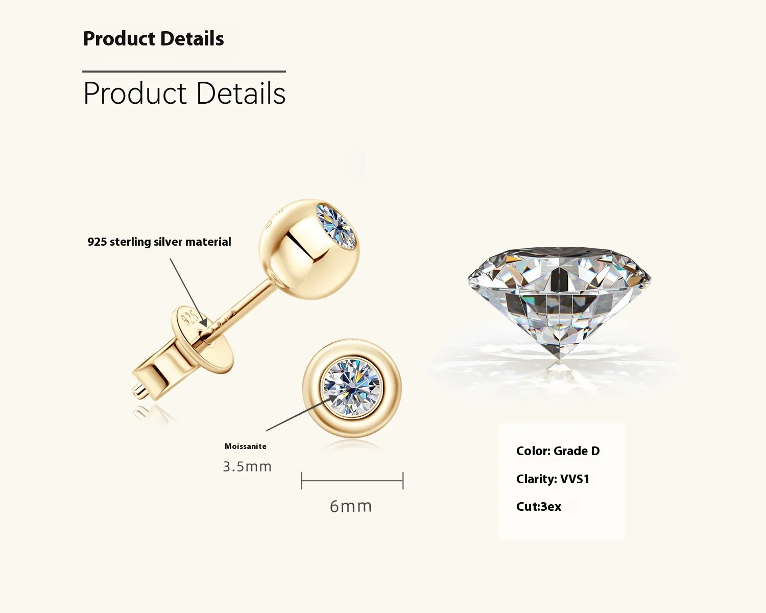 For those who appreciate unique, personalized jewelry, these ear studs are a perfect choice. Their small, personalized design makes them a great option for individuals who want something different from the conventional stud earring. The Moissanite stones will always catch the light, ensuring you shine on every occasion.