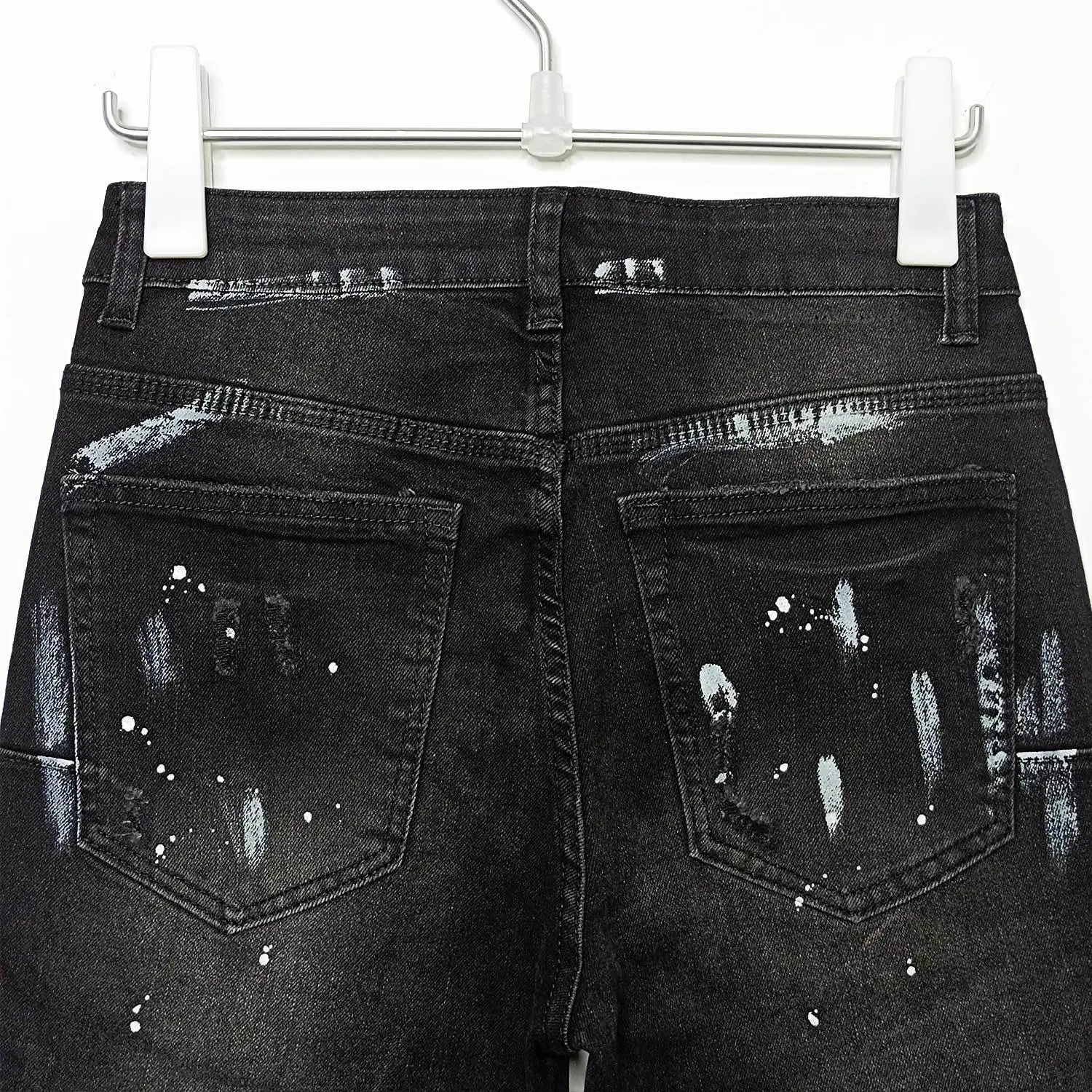Additionally, the paint splash and ripped details are carefully crafted to enhance the aesthetic of the jeans without compromising their durability, ensuring that they continue to look great after multiple washes.