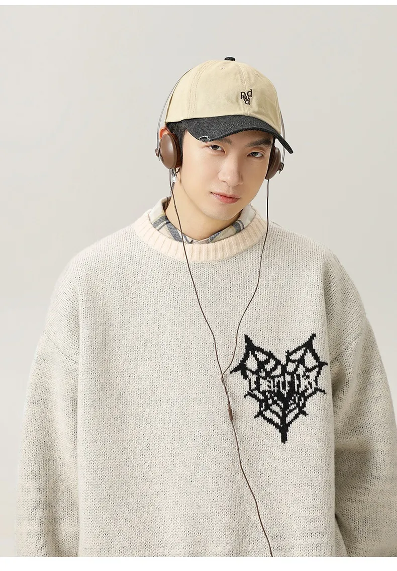 The American Retro Hand-Painted Jacquard Round Neck Sweater is more than just an article of clothing; it’s a piece of art that