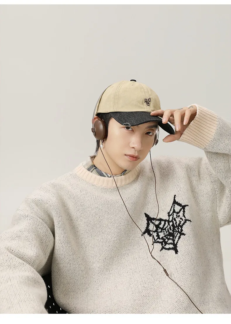 Embrace Vintage Charm with the American Retro Hand-Painted Jacquard Round Neck Sweater