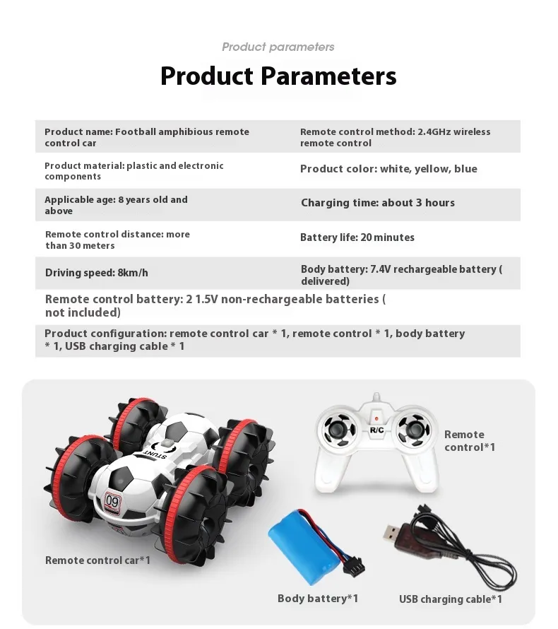 The Amphibious Remote Control Four-wheel Drive Electric Speed Car is a high-performance RC car that can handle a wide range of terrains, from smooth pavements to rugged landscapes and even water! With its amphibious design, powerful four-wheel drive, and impressive speed, this electric wireless car provides young racers with an unforgettable adventure experience. Perfect for New Zealand kids who love exploring the outdoors, this versatile RC car is designed to bring non-stop fun, whether driving through puddles, sand, grass, or dirt.