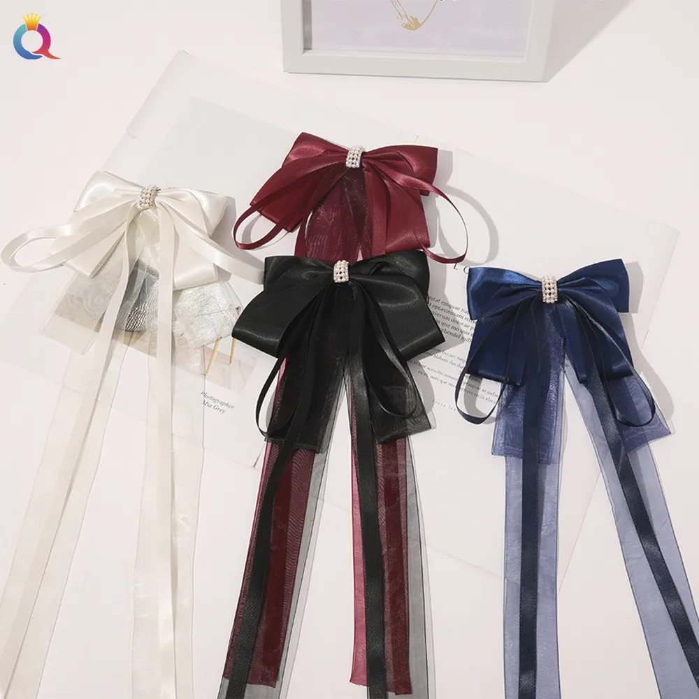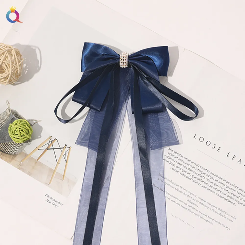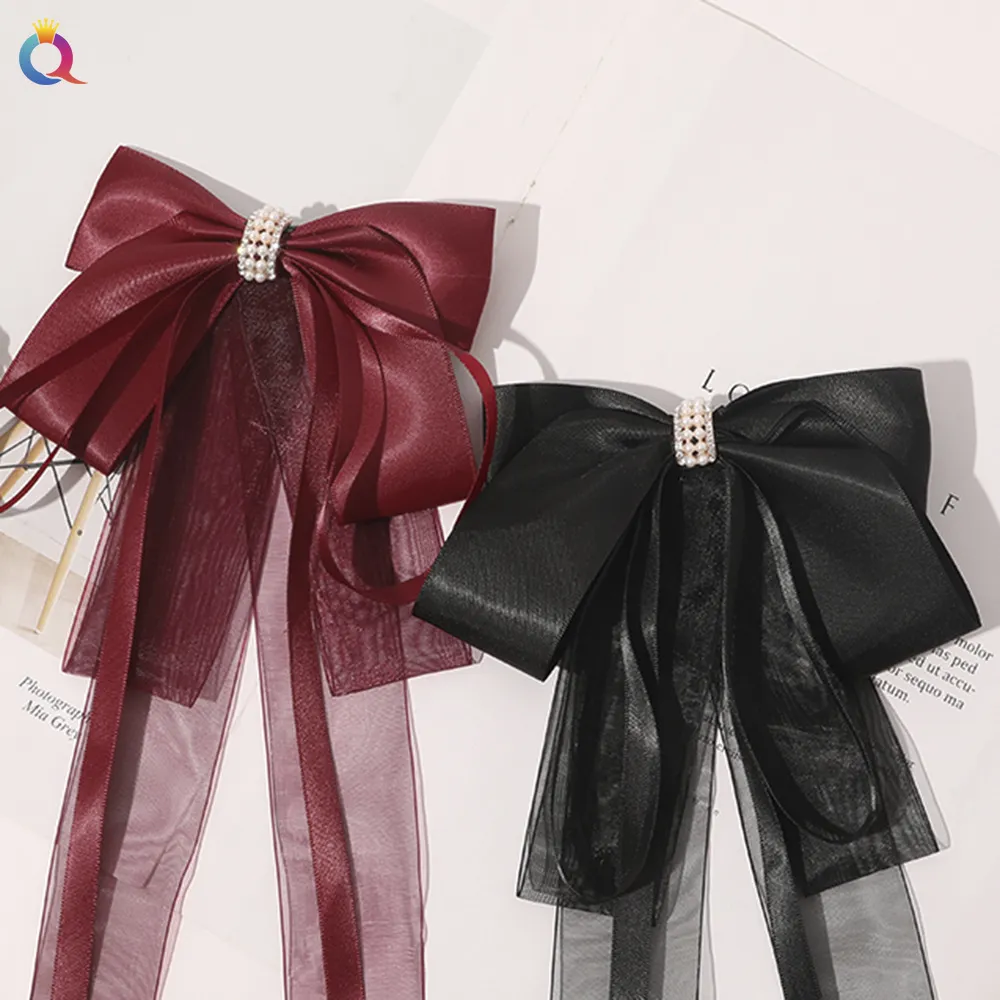 Color: Pearl bow ribbon hairpin beige, Pearl bow ribbon hairpin Burgundy, Pearl bow ribbon hairpin dark blue, Pearl bowknot ribbon hairpin
