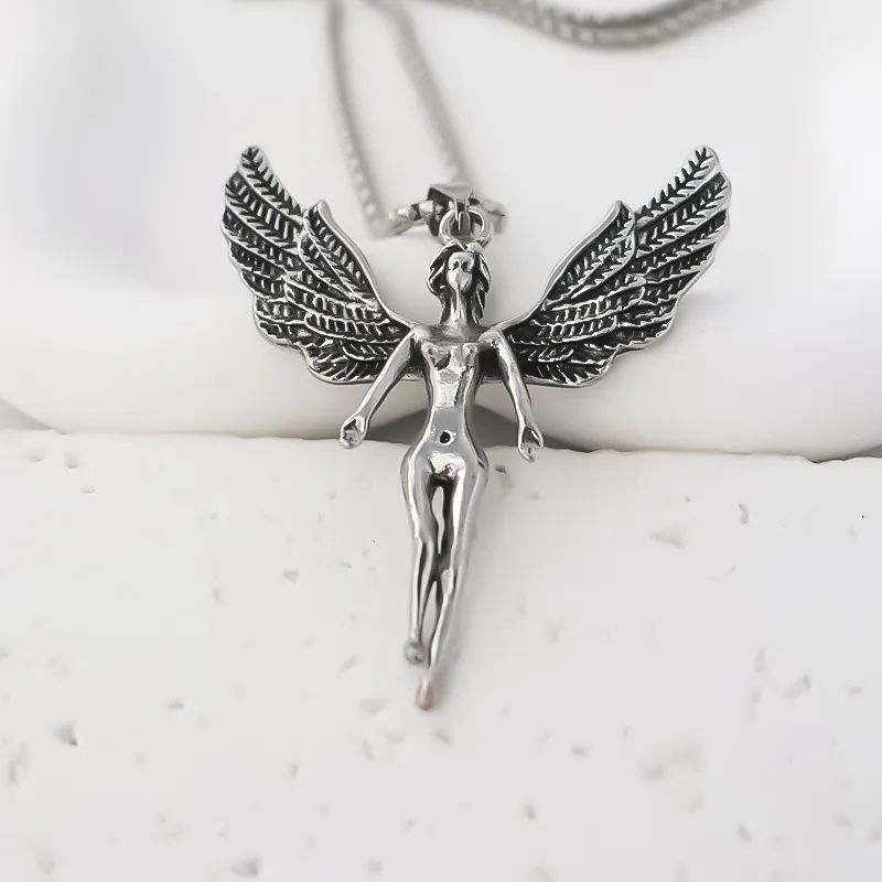 The angel wings symbolize faith, love, and spiritual connection, making this pendant a cherished piece for wearers of all backgrounds.