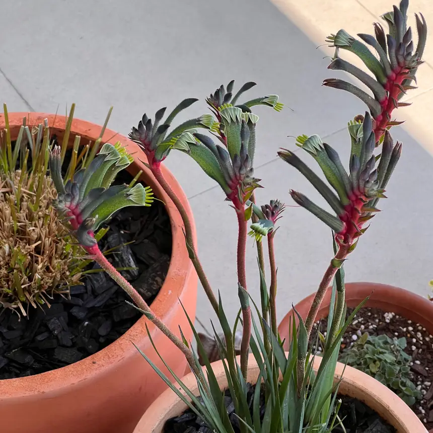 - Vibrant Blooms: The 'Fireworks' variety stands out with its bright, fiery red and green flowers, perched atop tall, slender stems. These tubular blooms, resembling the paws of kangaroos, not only add a dramatic splash of color to any setting but also attract a host of pollinators, from hummingbirds to bees, adding life and movement to your garden.